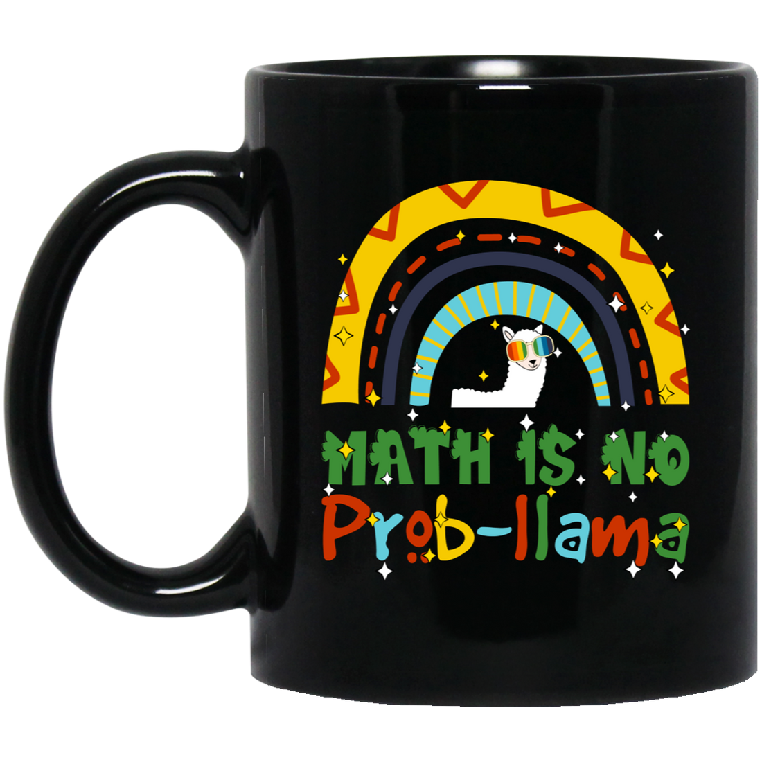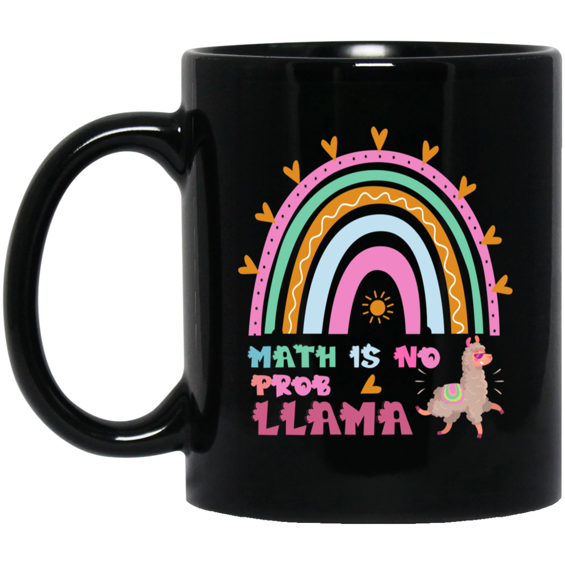 Math Is No Problem, No Prob-llama, Math Rainbow Black Mug
