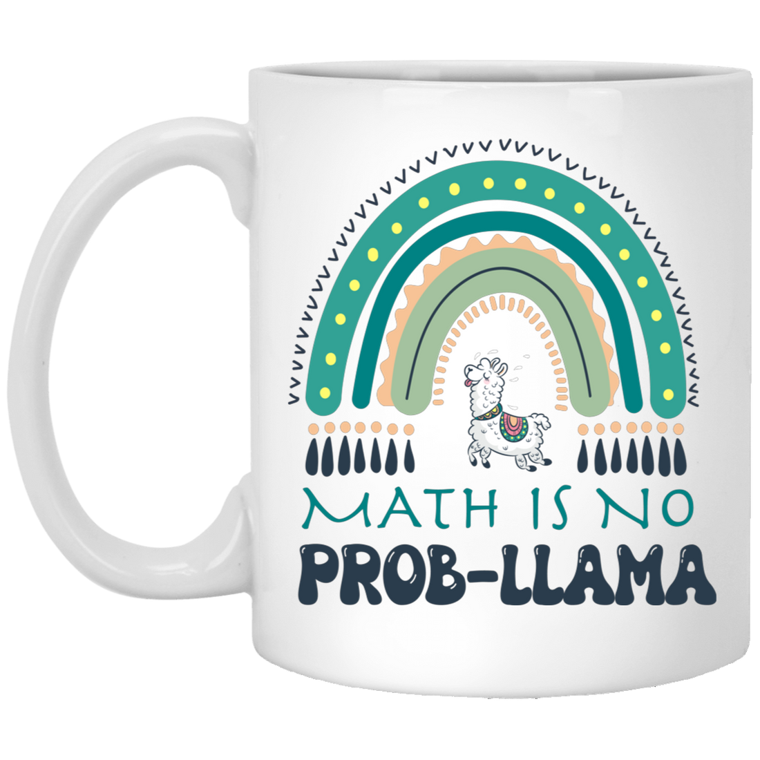 Math Is No Prob-Llama, Green Rainbow, Cute Llama White Mug