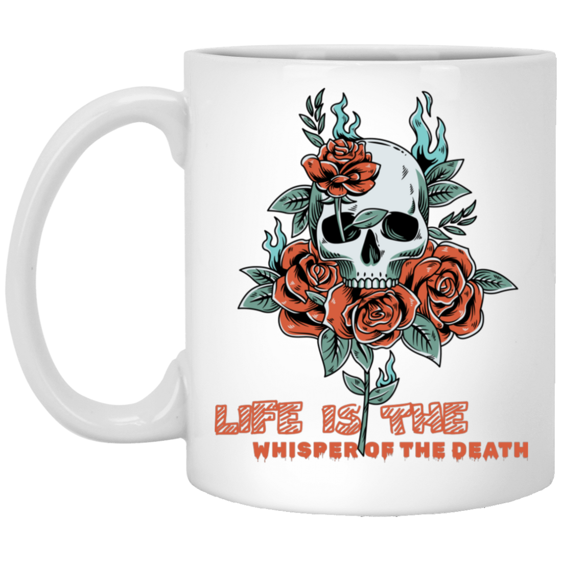 Skull With Roses, Life Is The Whisper Of The Death White Mug