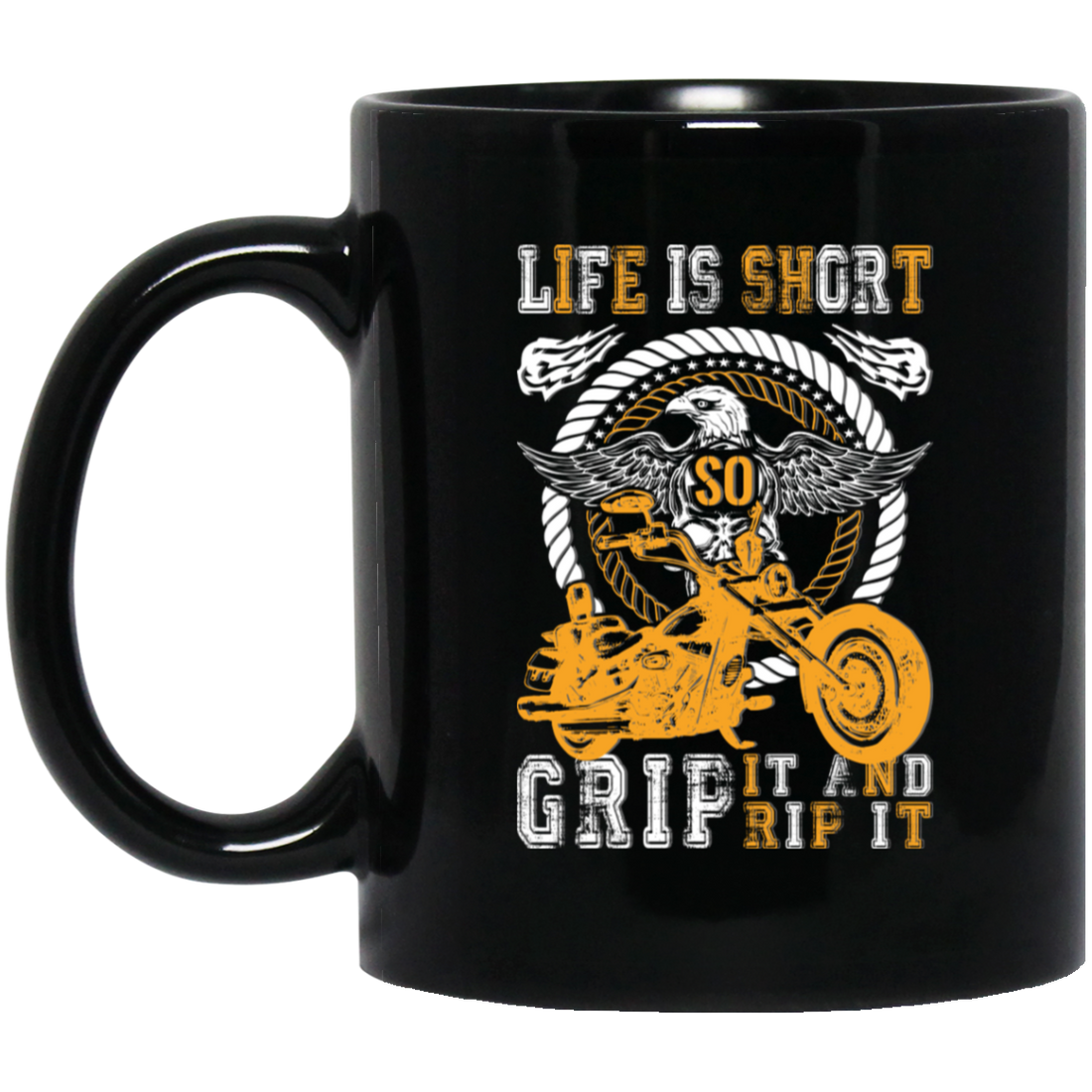 Life Is Short, So Grip It And Rip It, Retro Eagle, Motorbike Black Mug