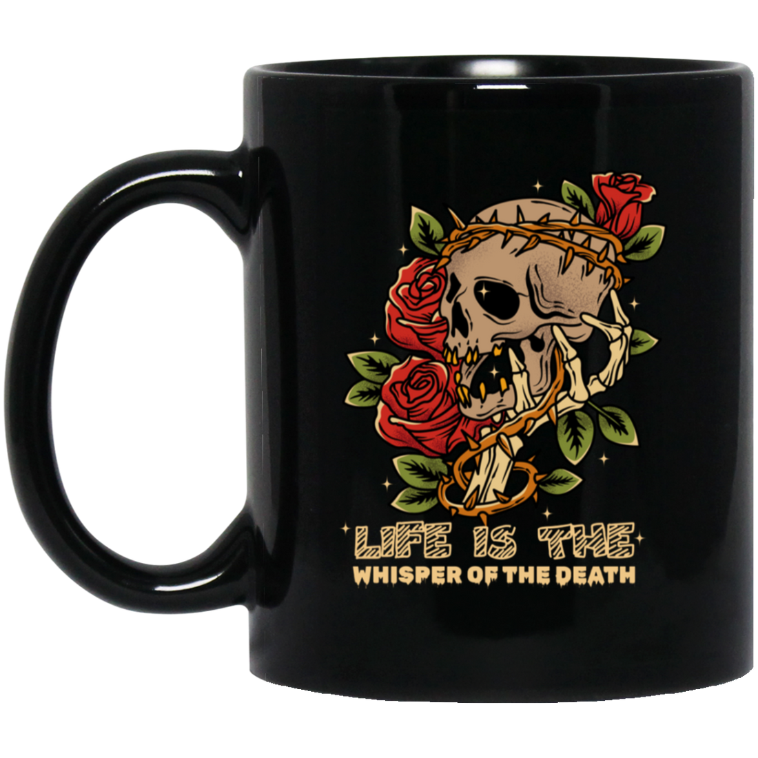 Life Is The Whisper Of The Death, Skull With Roses Black Mug