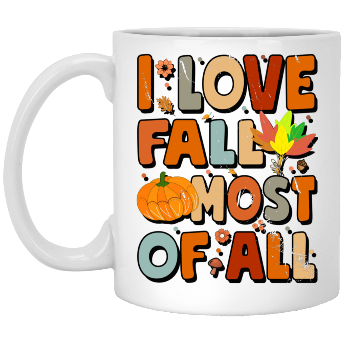 I Love Fall Most Of All, Fall Season, Thanksgving Season White Mug