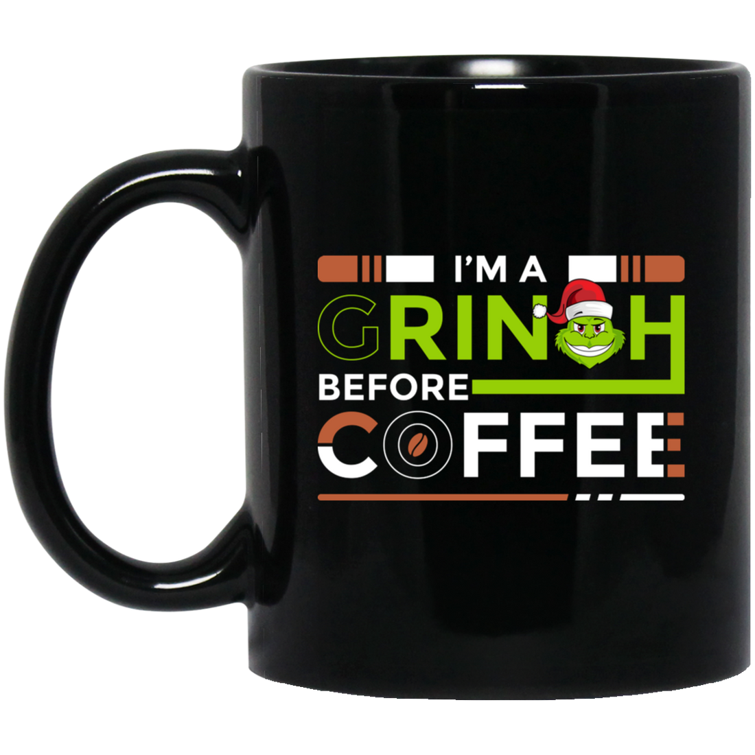 I Am A Grinch Before Coffee, Grinch Face, Green Grinch, Trendy Halloween Black Mug