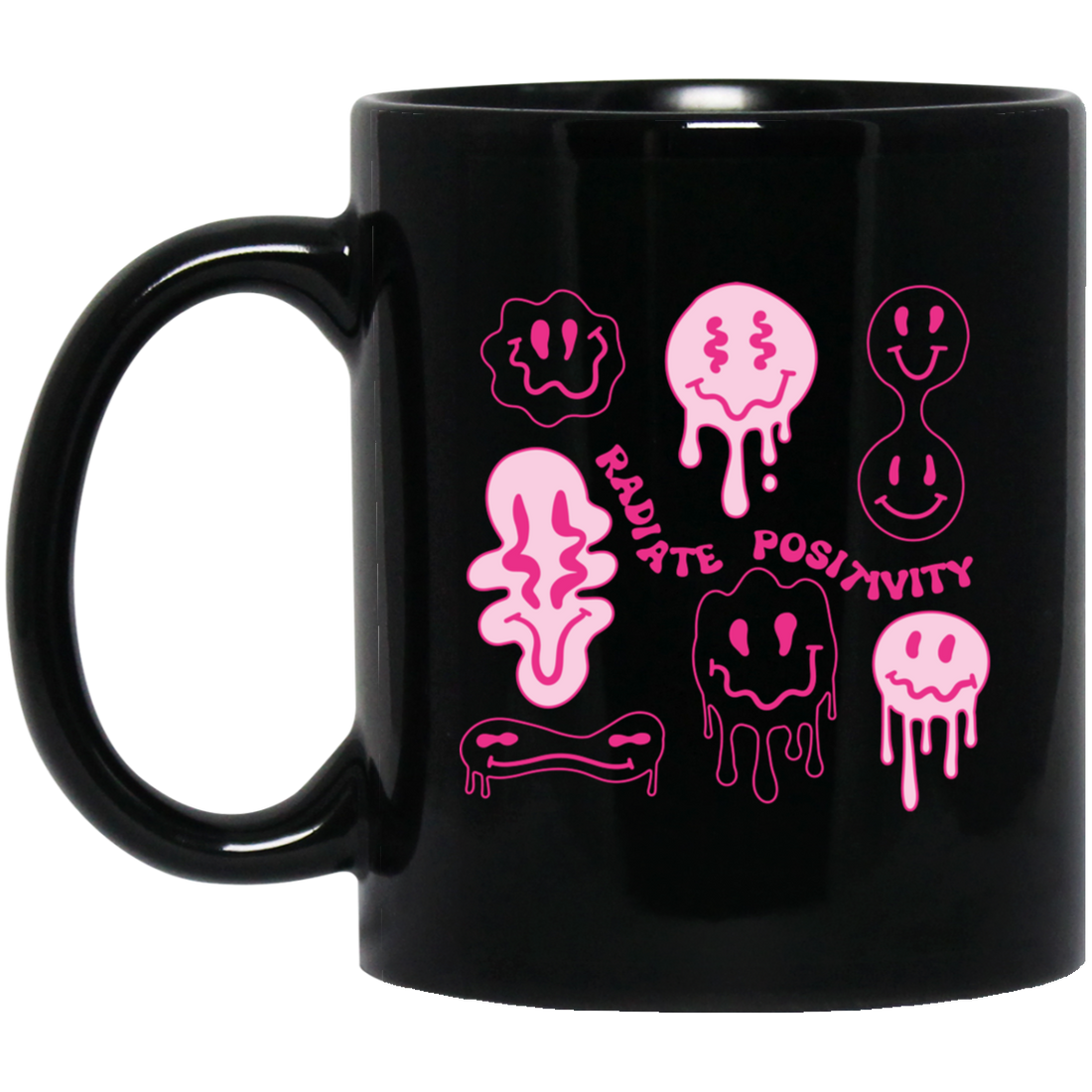 Radiate Positivity, Groovy Smile Face, Radiate Positivity Energy Black Mug