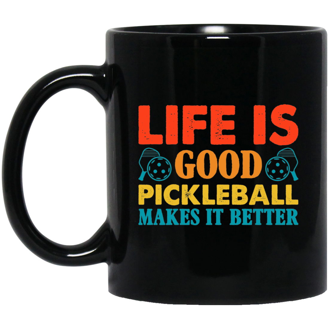 Life Is Good, Pickleball Makes It Better, Retro Pickleball Black Mug