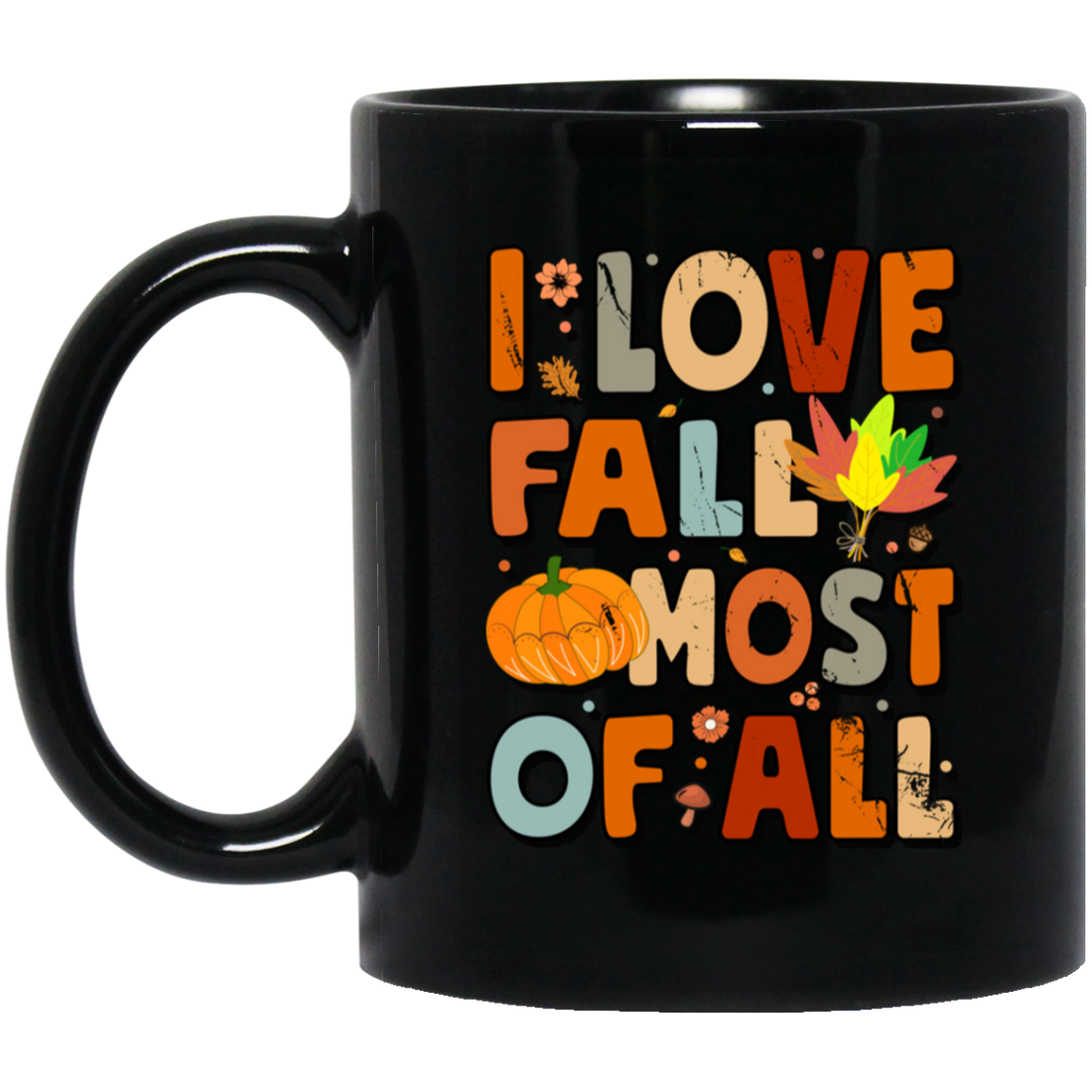 I Love Fall Most Of All, Fall Season, Thanksgving Season Black Mug