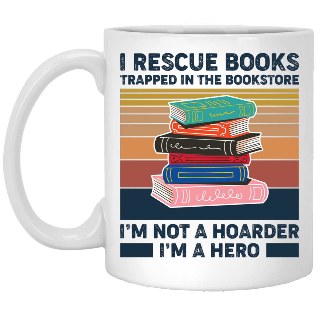 I Rescue Books Trapped In The Bookstore, I'm Not A Hoarder, I'm A Hero White Mug
