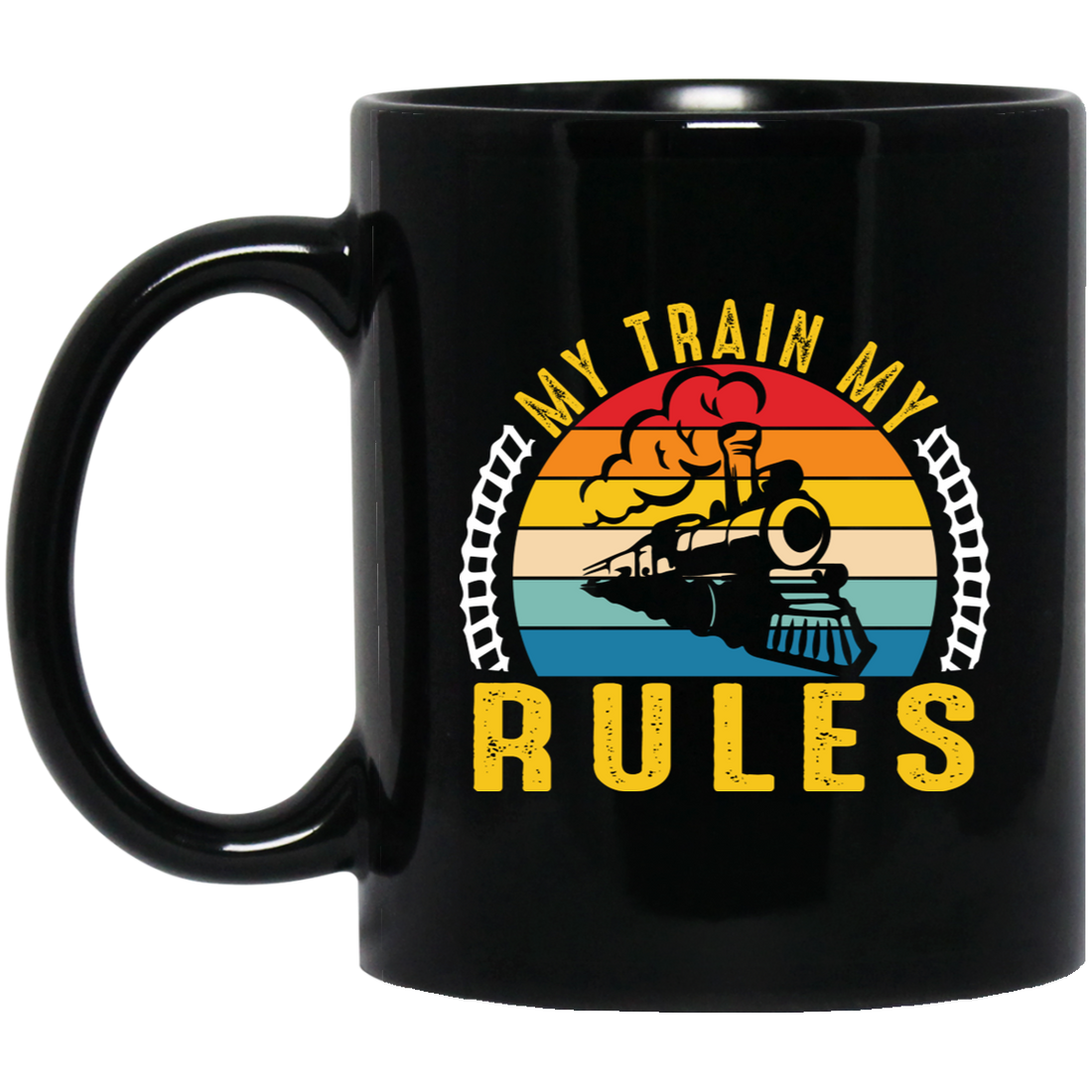 My Train, My Rules, Retro Train, Retro Rules, Train Silhouette Black Mug