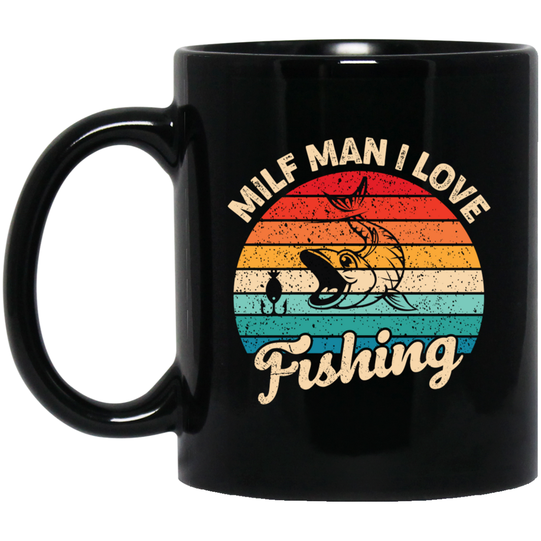 Milf Man I Love Fishing, Retro Fishing, Fishing Silhouette Black Mug