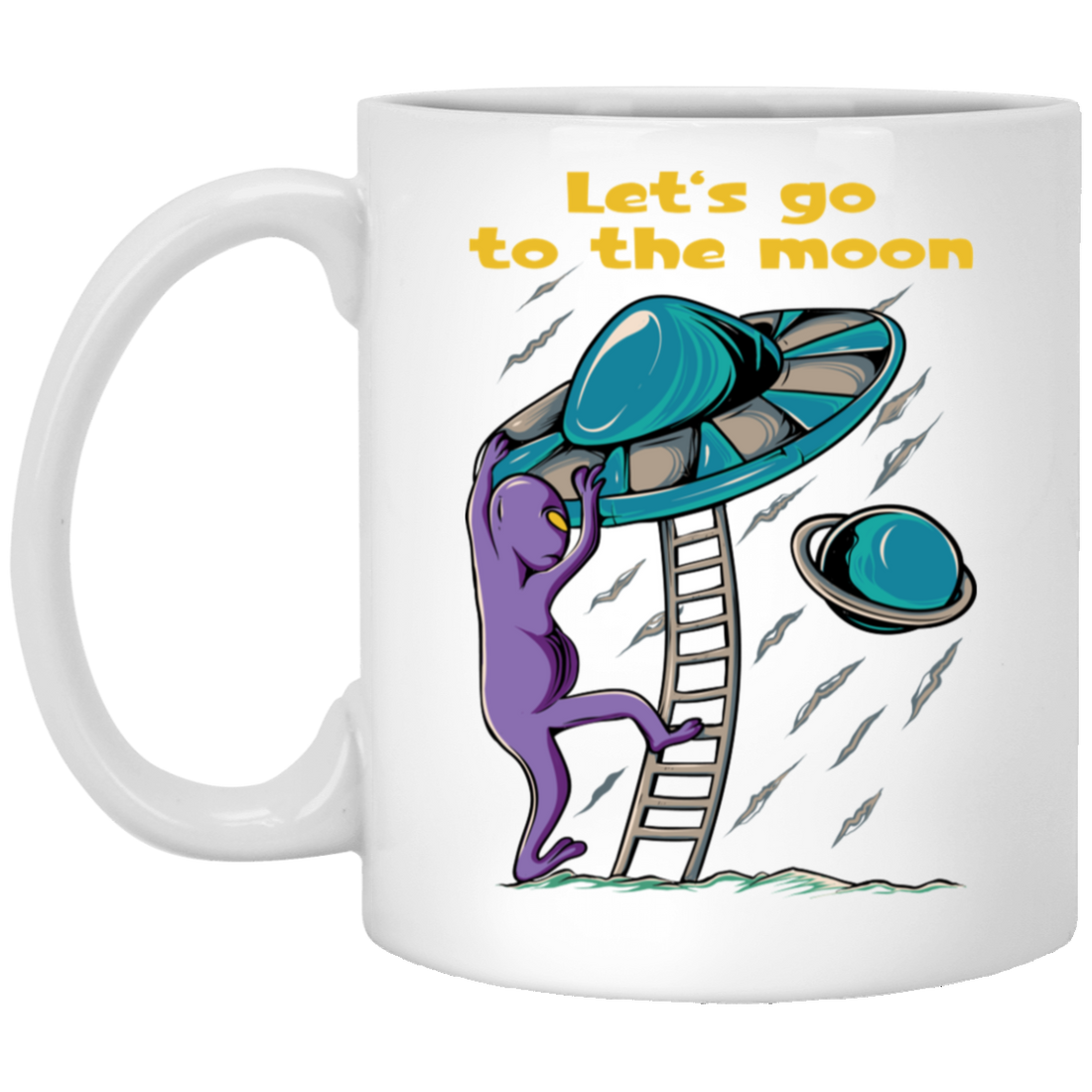 Let's Go To The Moon, Cute Alien, Come In Ufo White Mug