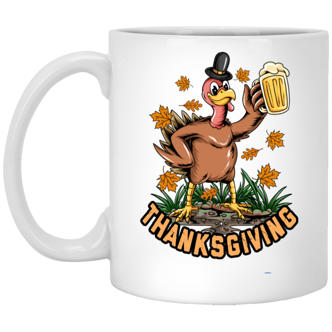 Turkey With Beer, Thanksgiving's Day, Thankful With Beer White Mug