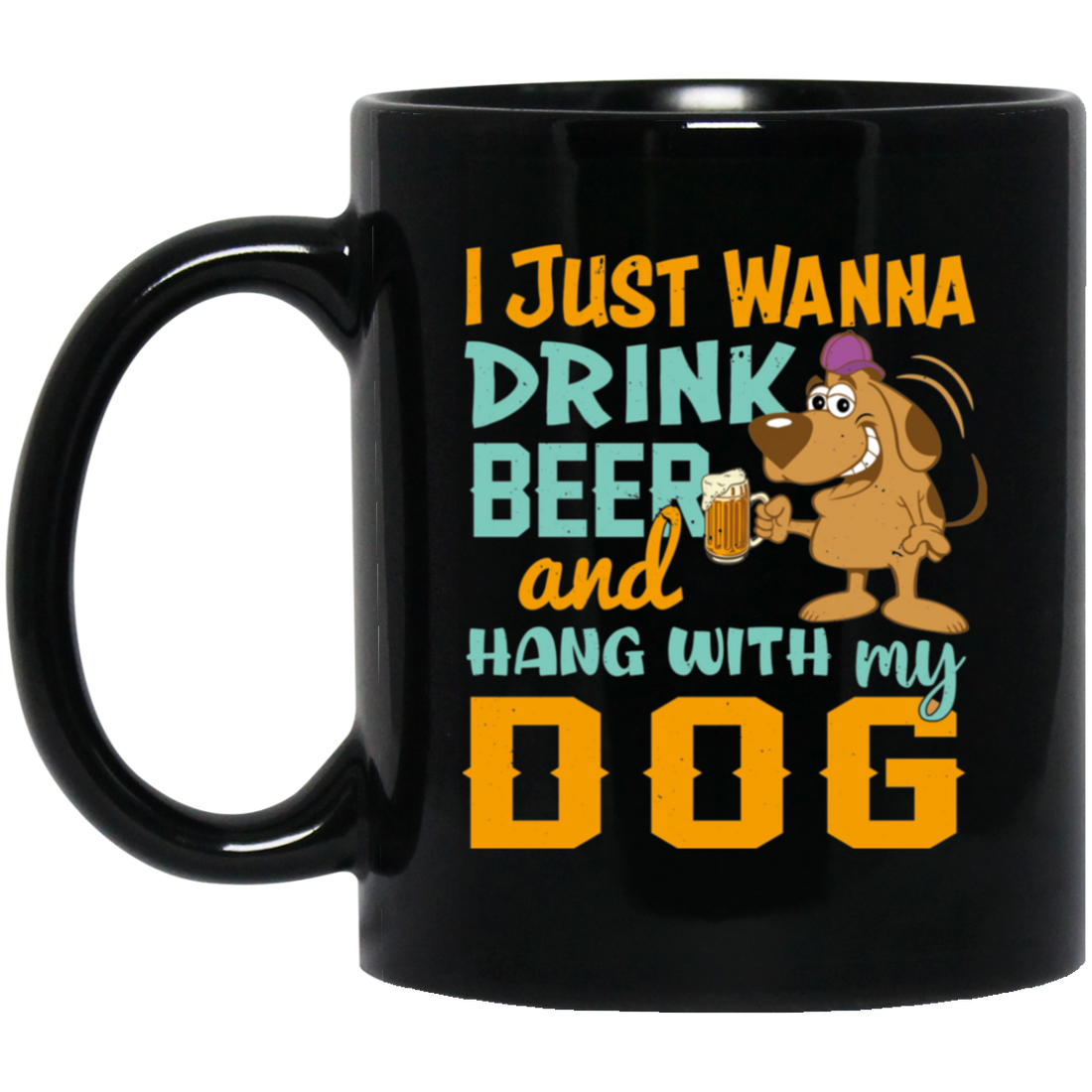 I Just Wanna Drink Beer And Hang With My Dog, Fluffy Dog Black Mug