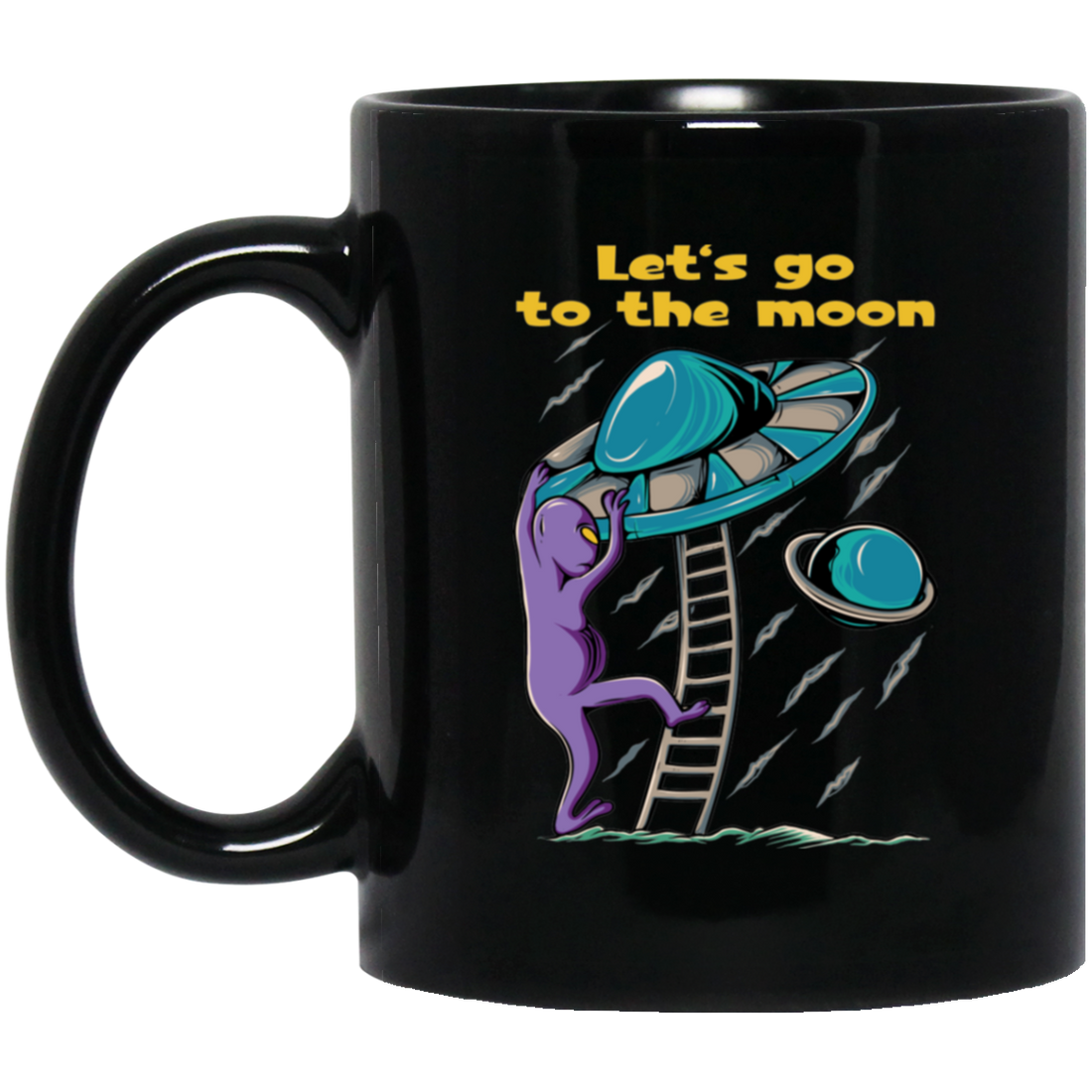 Let's Go To The Moon, Cute Alien, Come In Ufo Black Mug