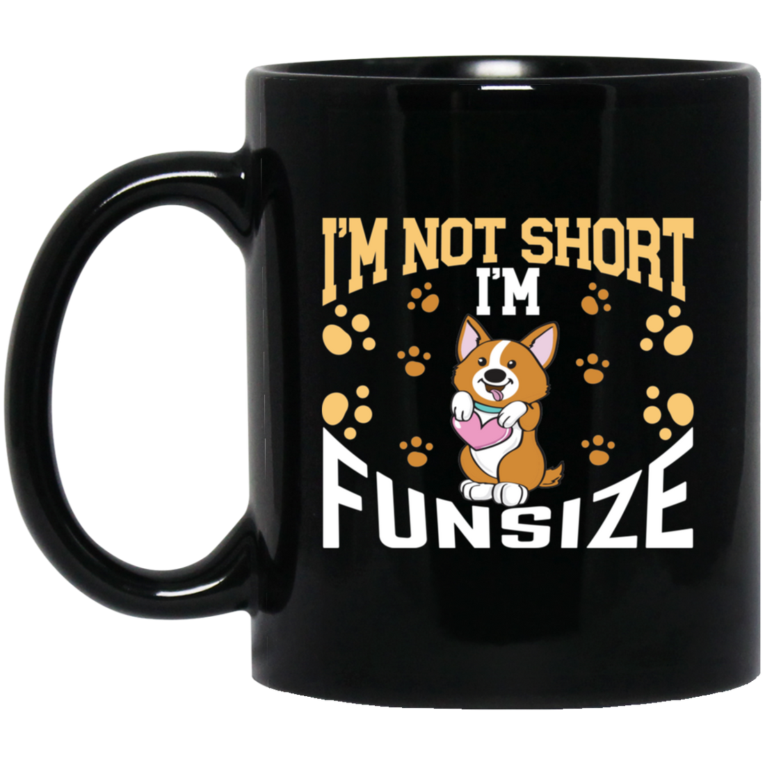 I'm Not Short, I'm Funsize, Mini Corgi, Fullsize Dog Black Mug