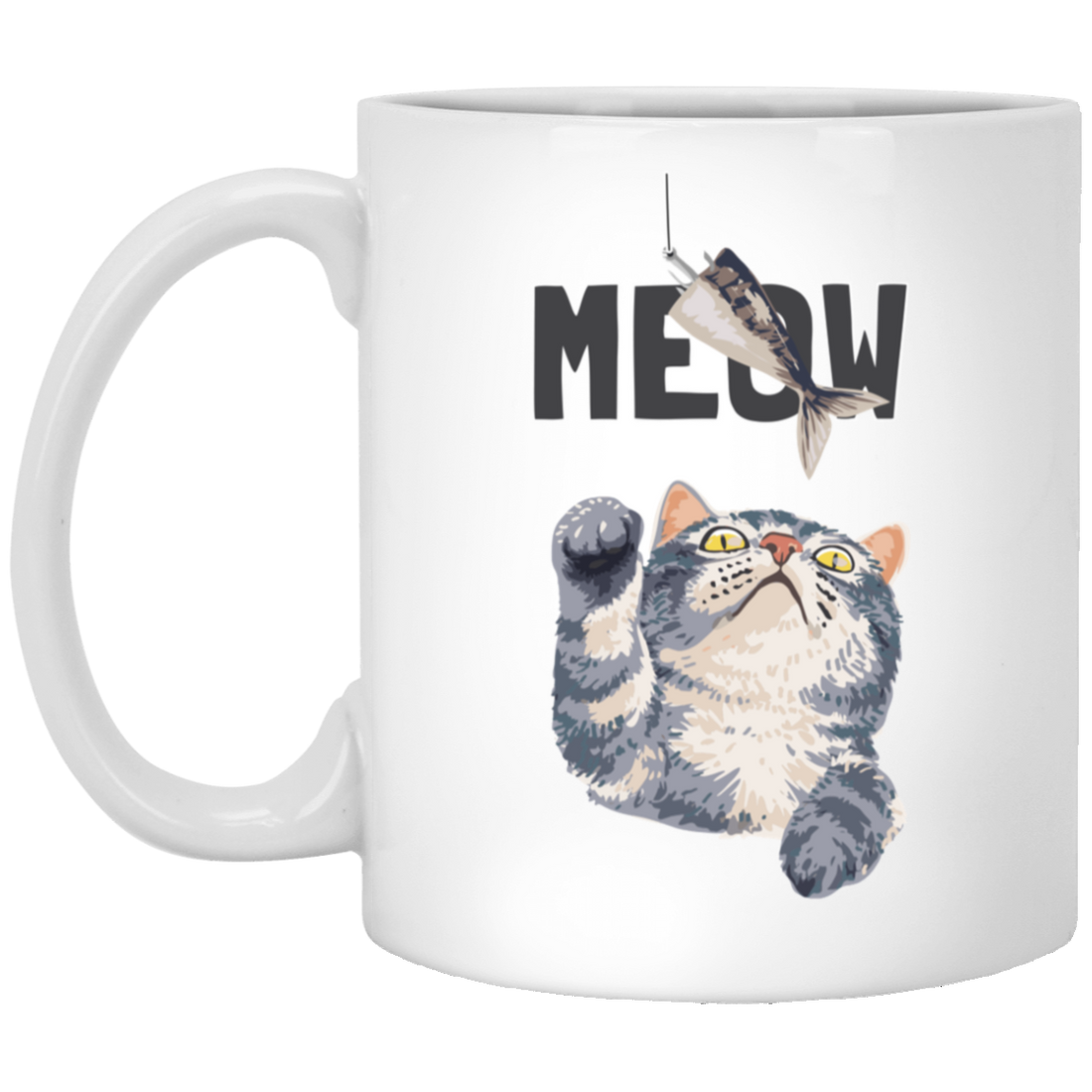 Cute Meow, Cute Stupid Cat, Cat Catch Fishing Rod White Mug