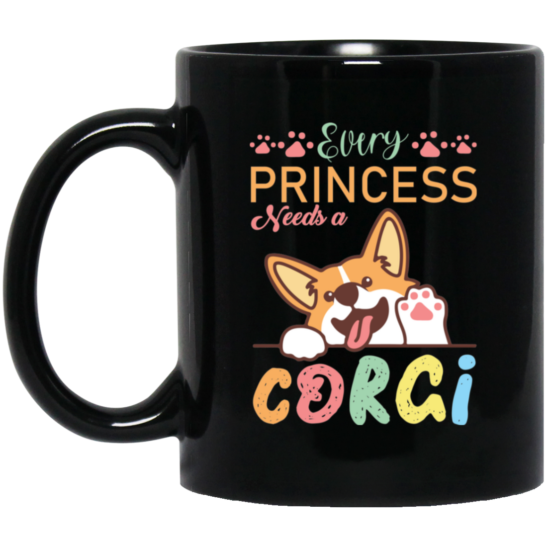 Every Princess Needs A Corgi, Cute Corgi Dog Black Mug