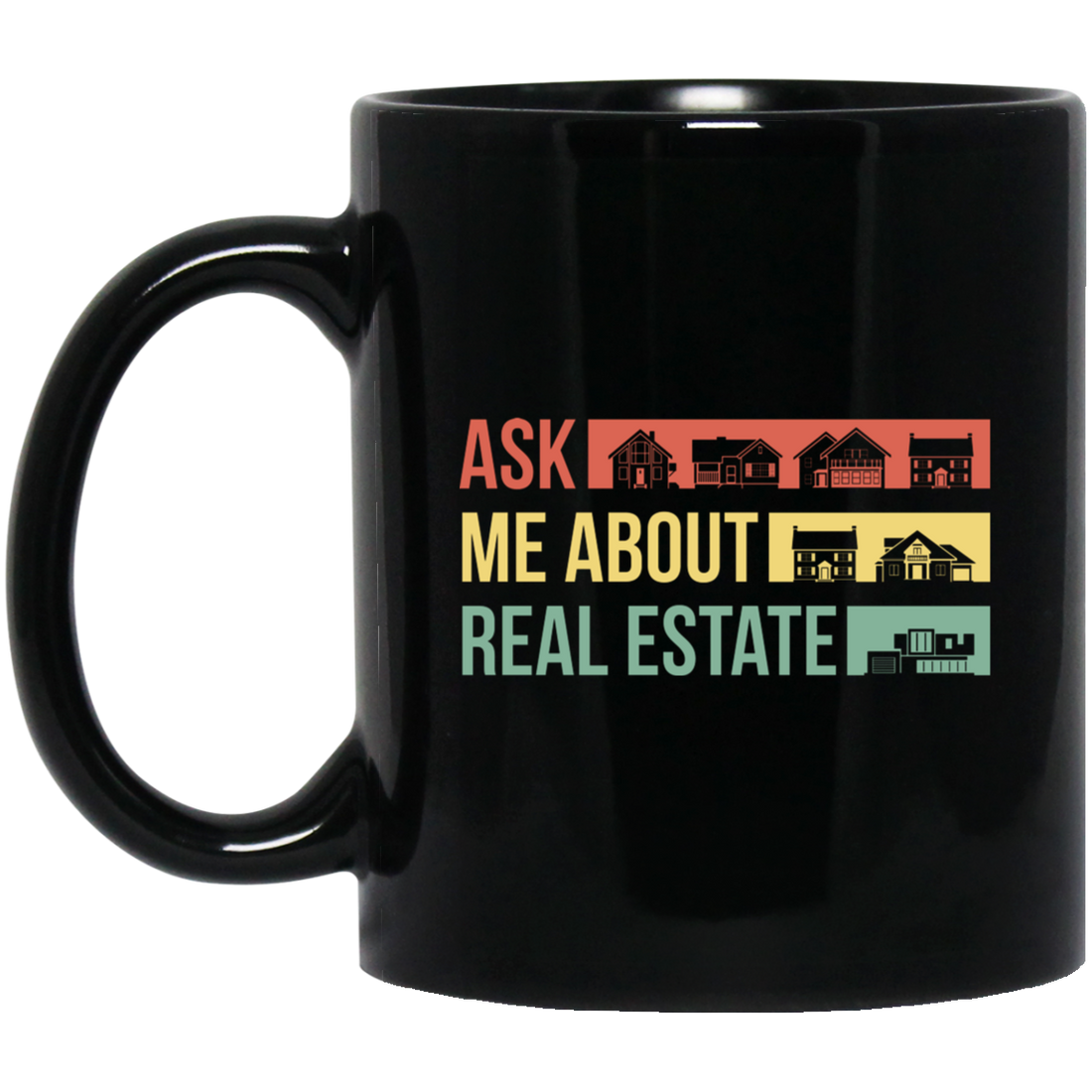 Ask Me About Real Estate, Retro Real Estate, House Silhouette Black Mug
