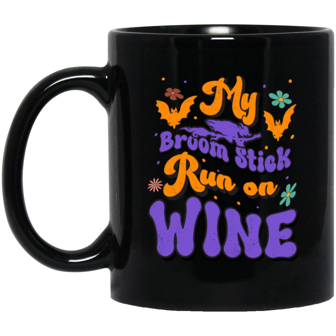 Fly Broom Stick, Run On Wine, Halloween's Day Black Mug