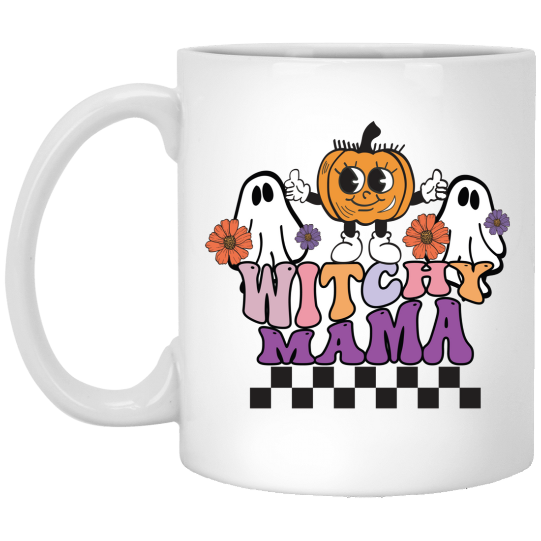 Witchy Mama, Pumpkin And Boos, Spooky Halloween White Mug