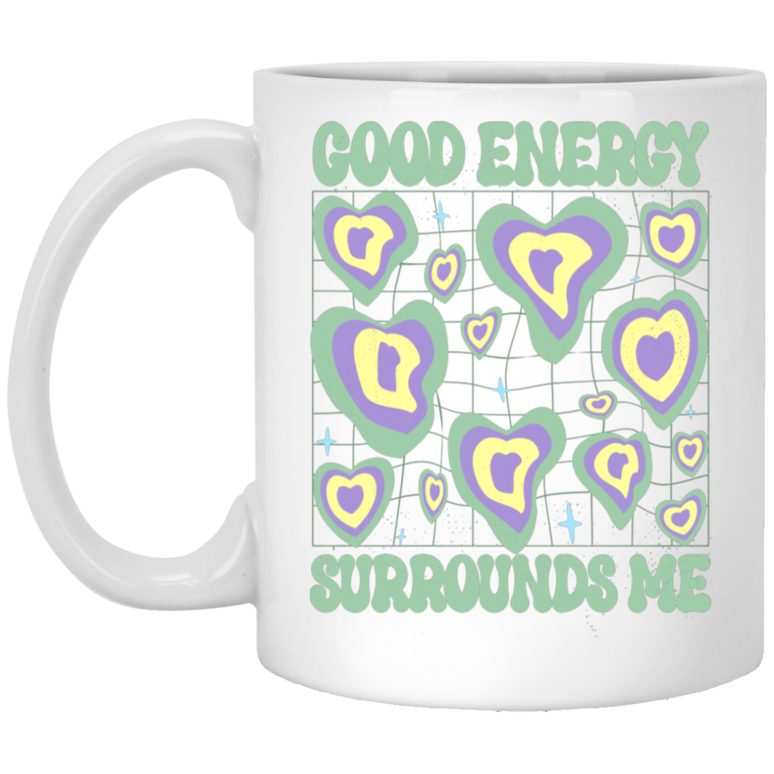 Good Energy Surrounds Me, Groovy Good Vibes White Mug