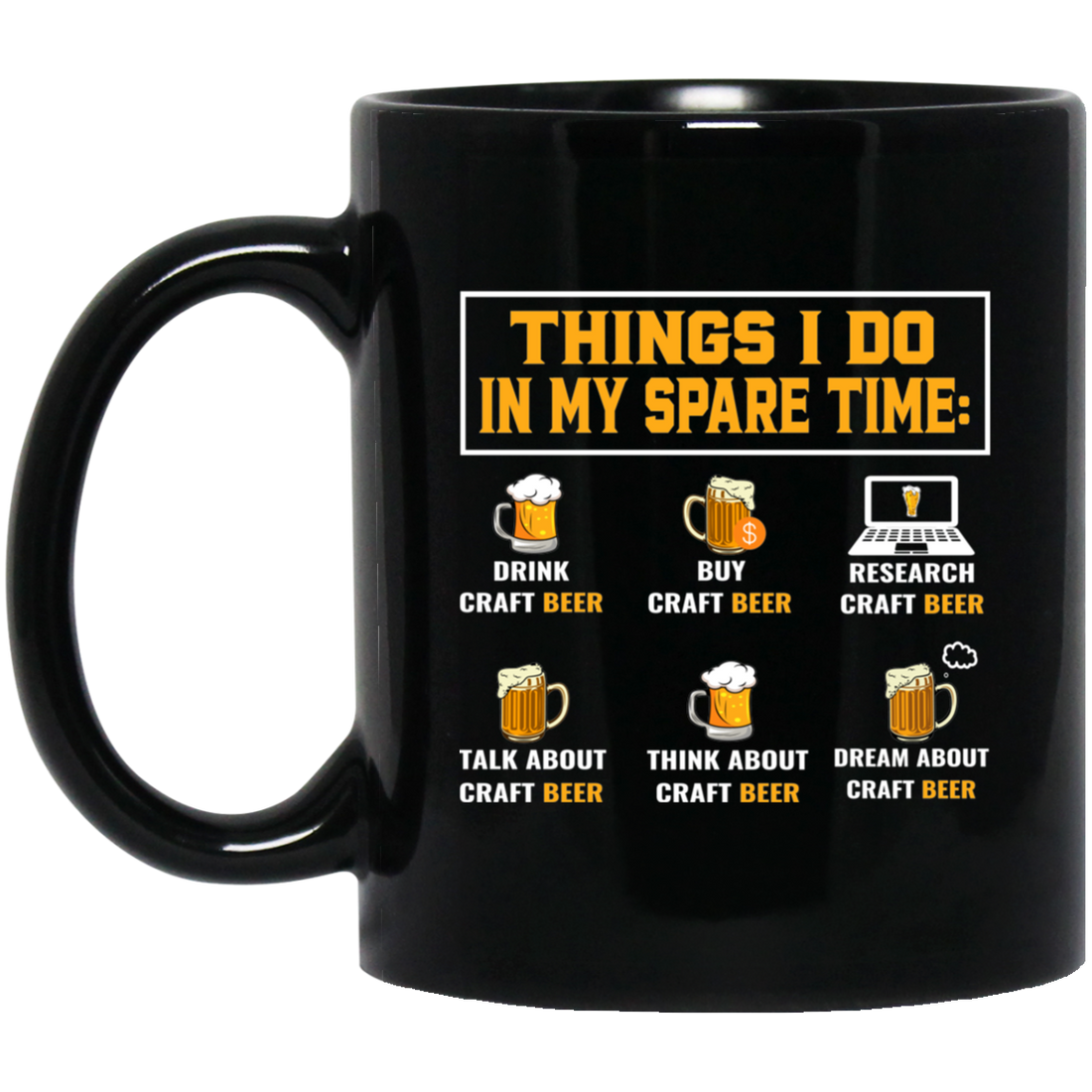 Craft Beer, Things I Do In My Spare Time, Beer Glass Black Mug