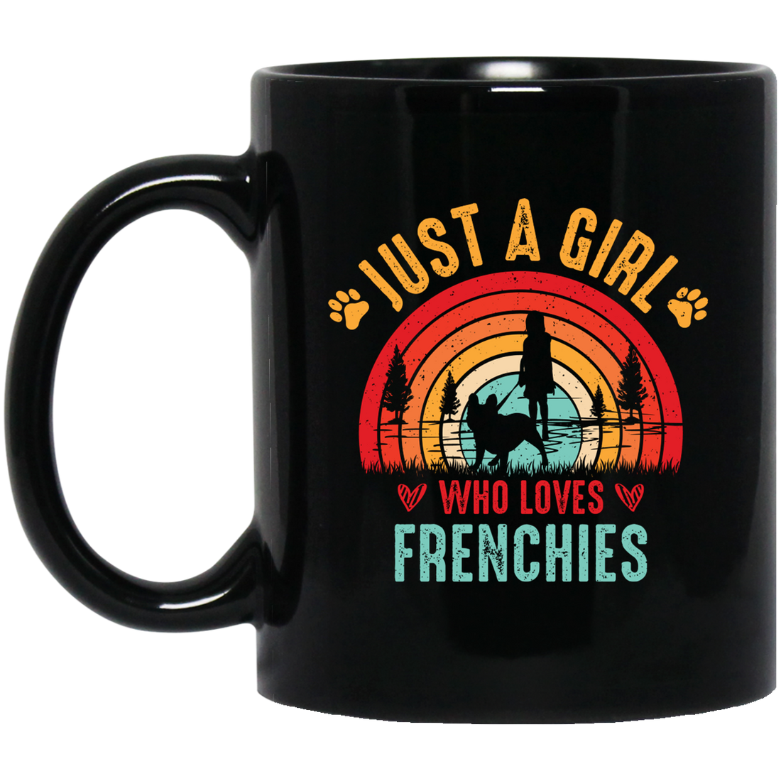 Just A Girl Who Loves Frenchies, Retro French Bulldog Black Mug