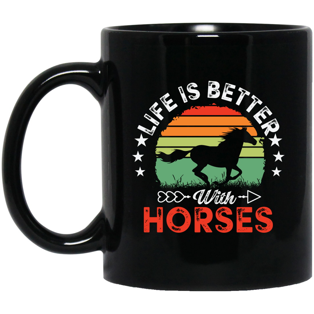 Life Is Better With Horses, Retro Horses, Horse Racing Black Mug
