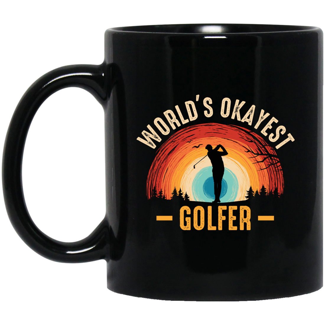 World's Okayest Golfer, Retro Golfing, Golf Player Black Mug