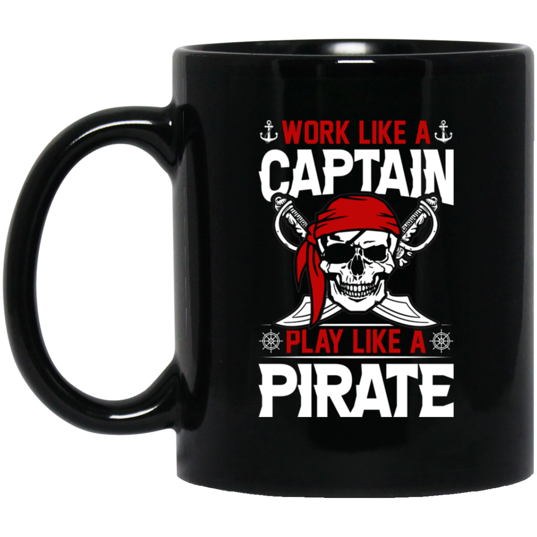 Work Like A Captain, Play Like A Pirate, Retro Pirate Black Mug