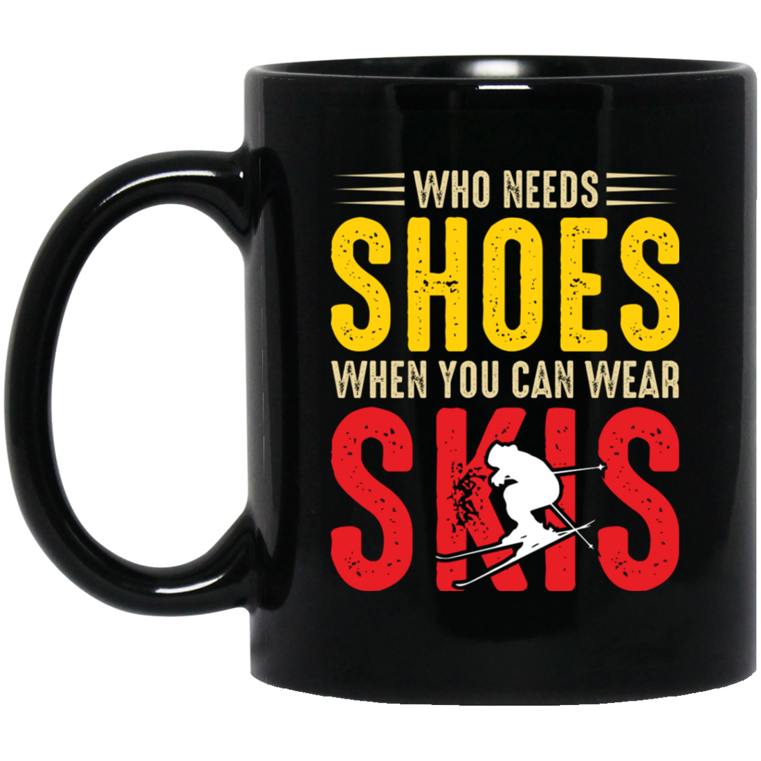 Who Needs Shoes, When You Can Wear Skis, Skiing Black Mug