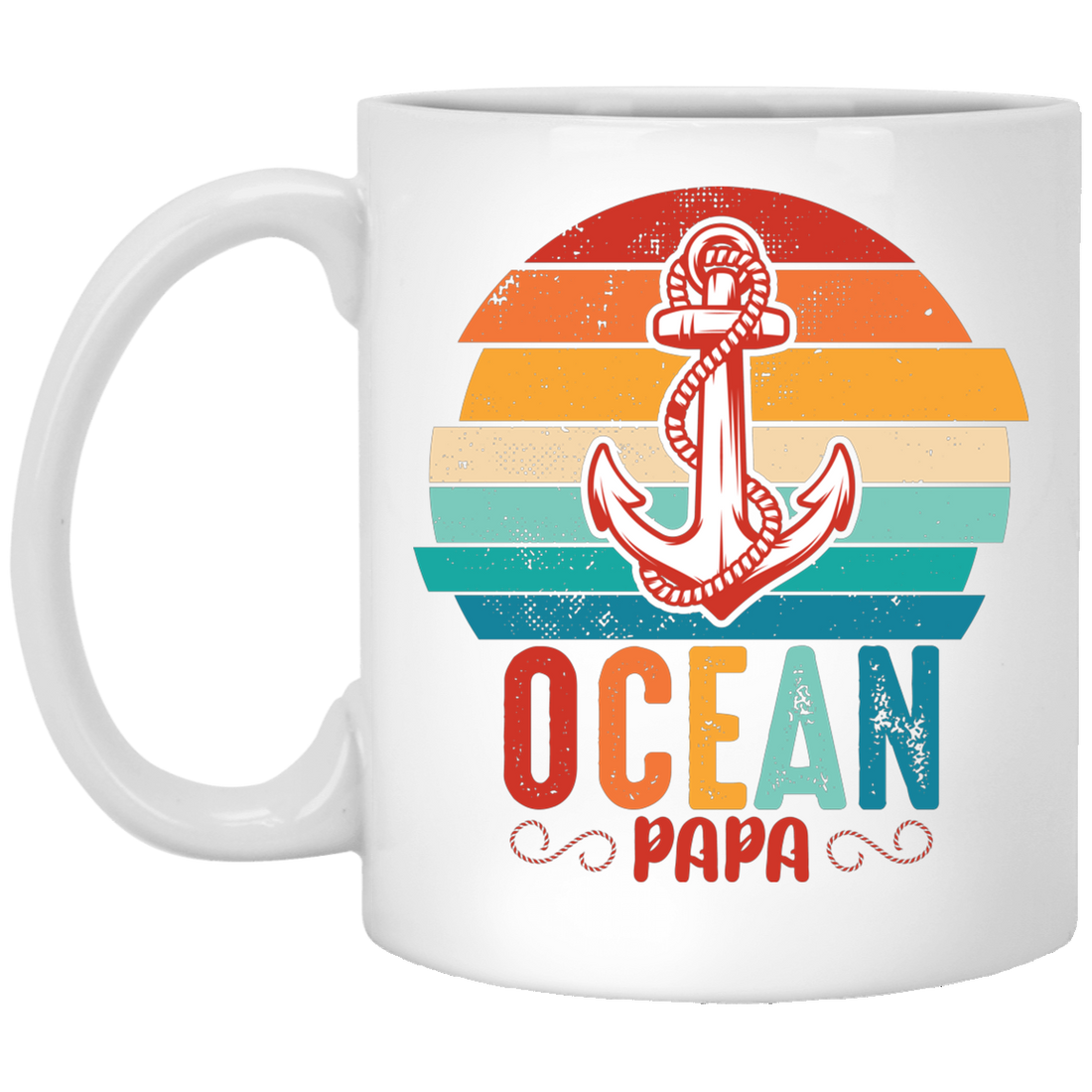 Ocean Papa, Retro Papa, Retro Ocean, Retro Anchor White Mug