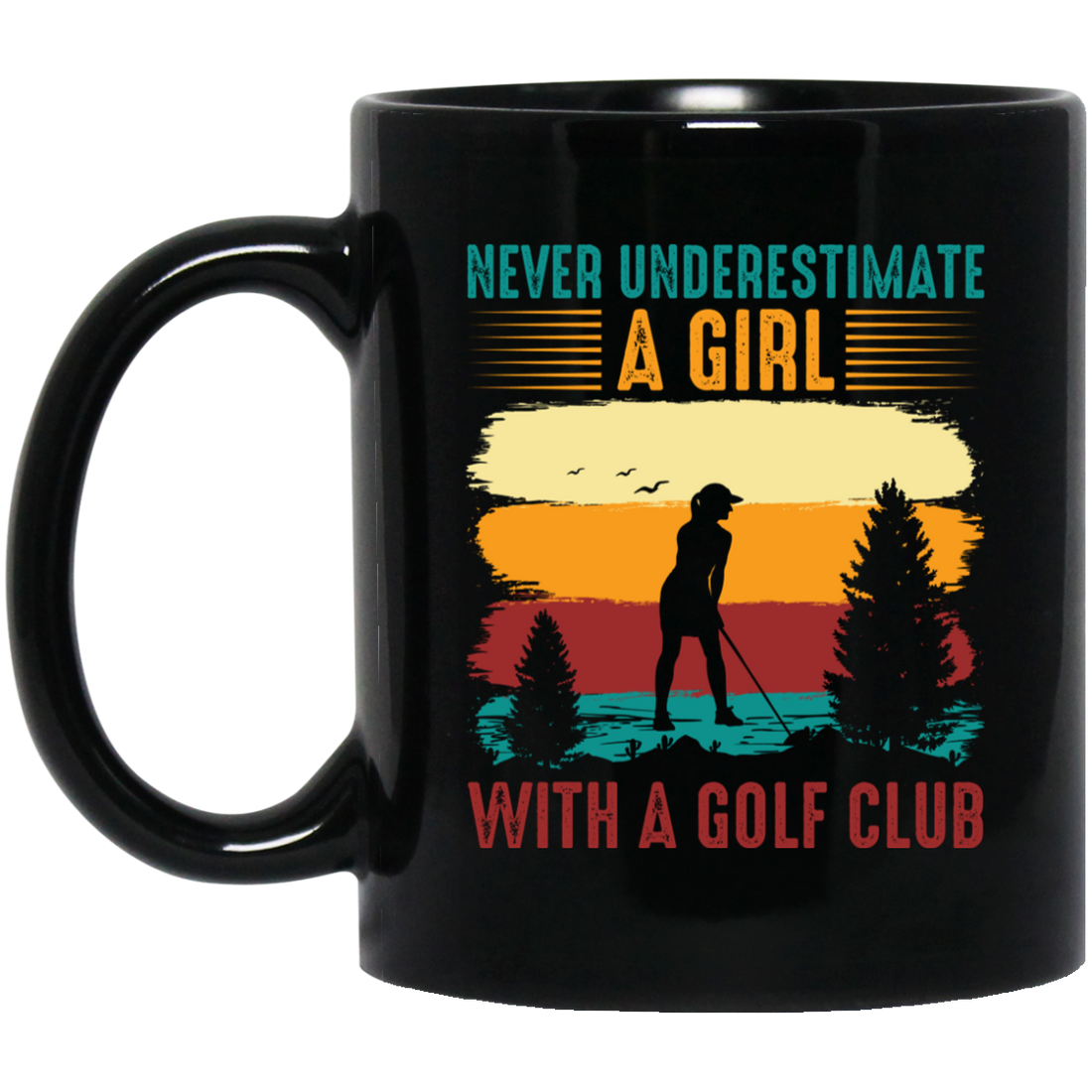 Never Underestimate A Girl With A Golf Club, Retro Golfing Game Black Mug