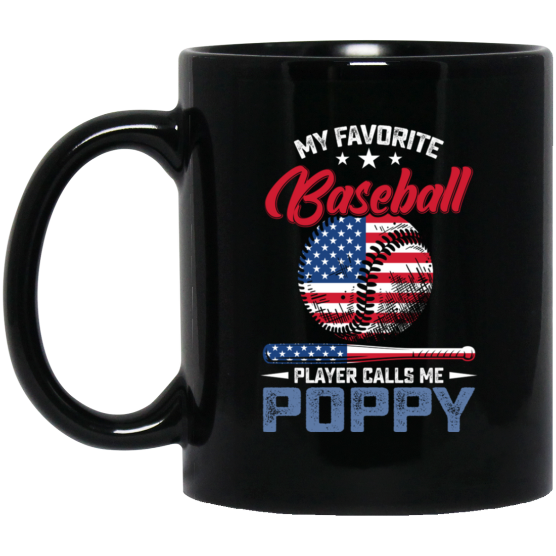 My Favorite Baseball Player Calls Me Poppy, American Baseball, Father's Day Gift Black Mug