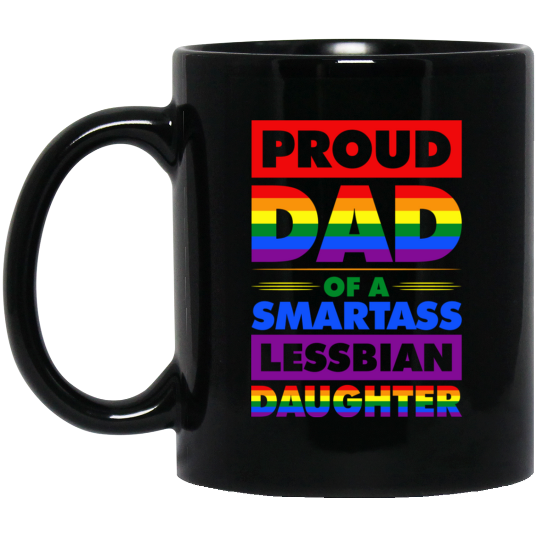 Proud Dad Of A Smartass Lesbian Daughter, LGBT Gift Black Mug