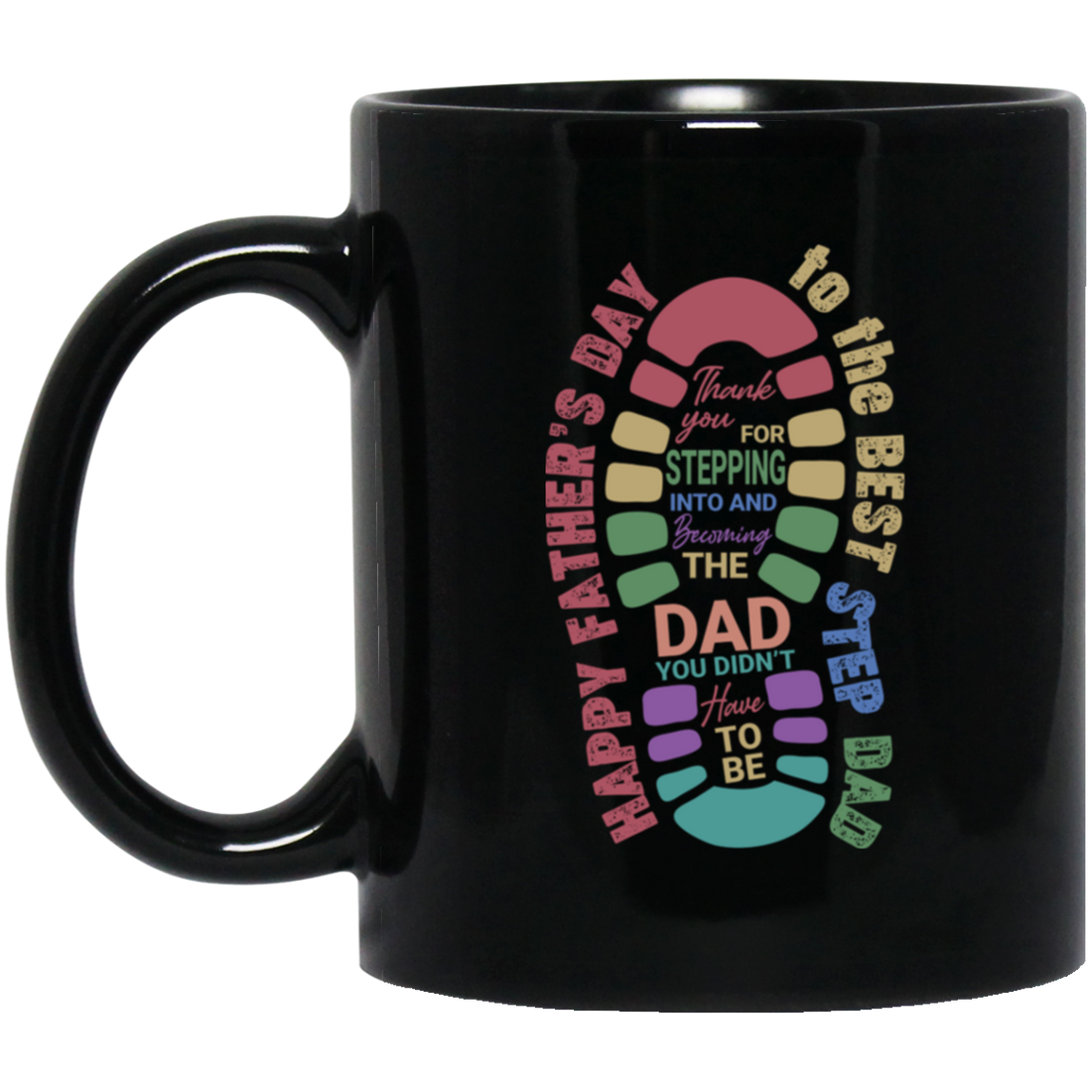 Thank you For Stepping Into And Becoming The Dad, You Didn't Here To Be, Father's Day Gift Black Mug