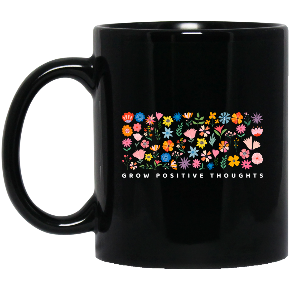 Grow Positive Thoughts, Flowers Bundle, Colorful Flowers Black Mug