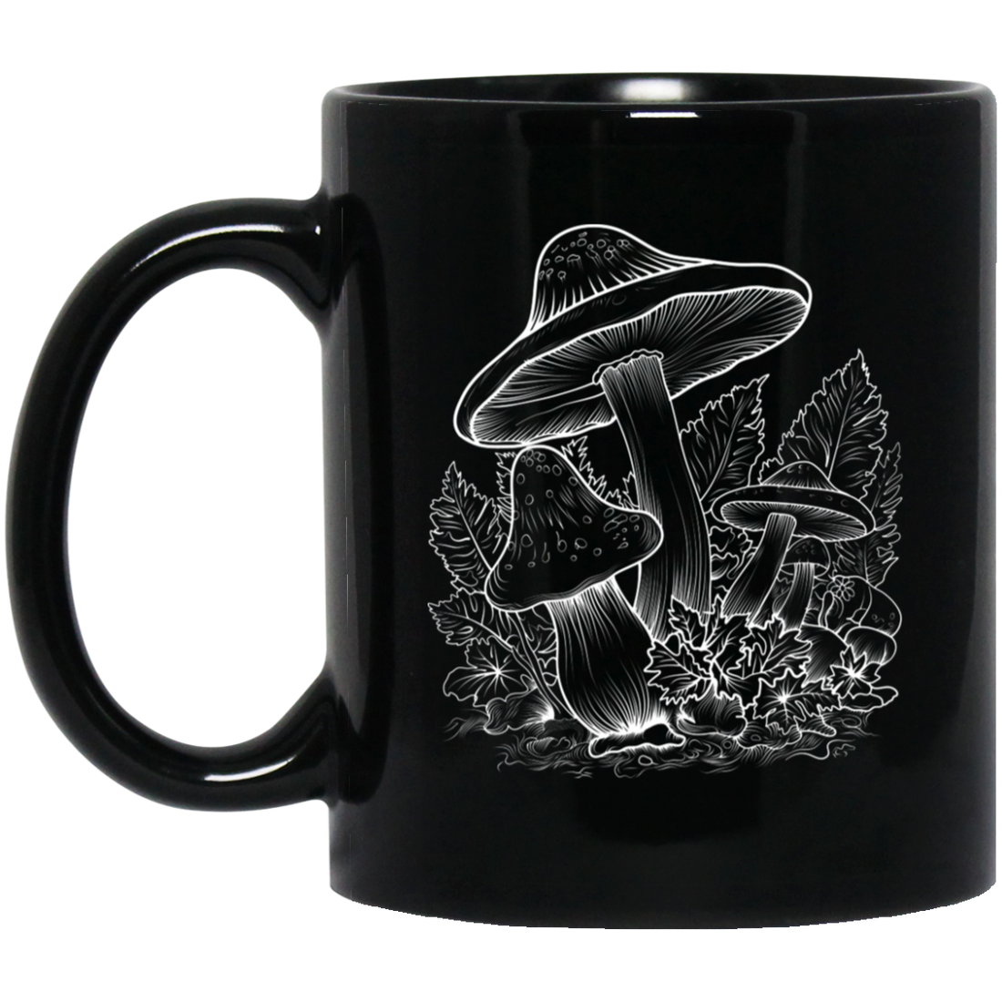 Aesthetic Mushroom, Cottagecore Design, Mushroom Lineart white Black Mug