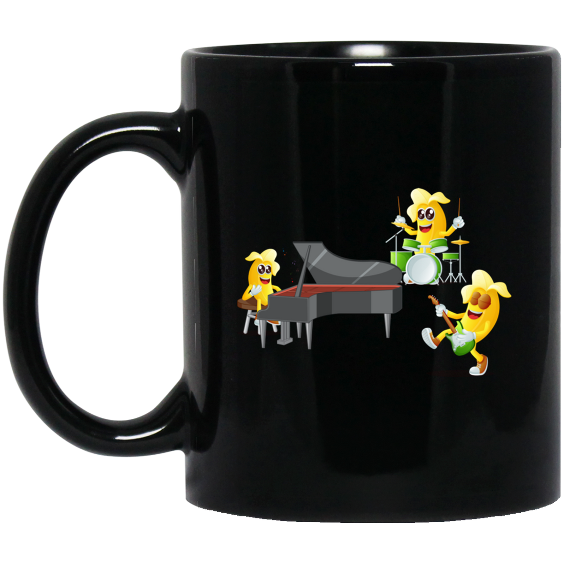 Banana Band, Banana Music Band, Banana Drum, Banana Guitarist, Banana Piano Black Mug