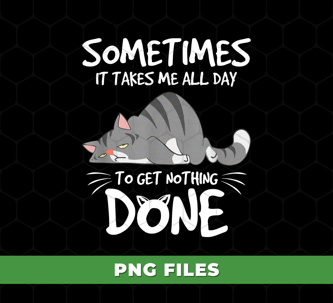 Funny Lazy Cat PNG, Sometimes It Takes Me All Day Quote, Cute Sleeping Cat Sublimation, Humor Pet Lover Design, Sarcastic Cat Clipart