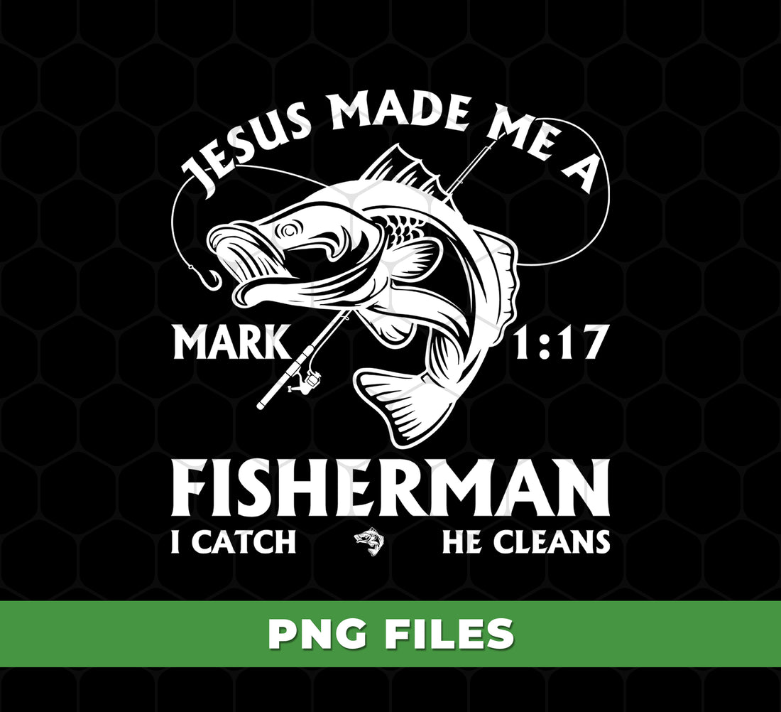 Jesus Made Me A Fisherman PNG, Mark 1_17 Bible Verse Fishing Clipart, Christian Fisherman Sublimation, Religious Fish PNG Design
