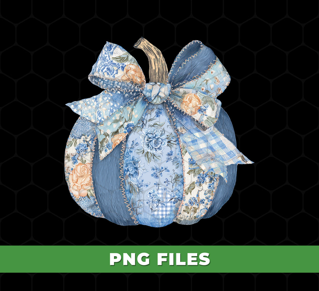 Bring farmhouse charm to your fall projects with this delightful blue patchwork pumpkin PNG! Featuring...