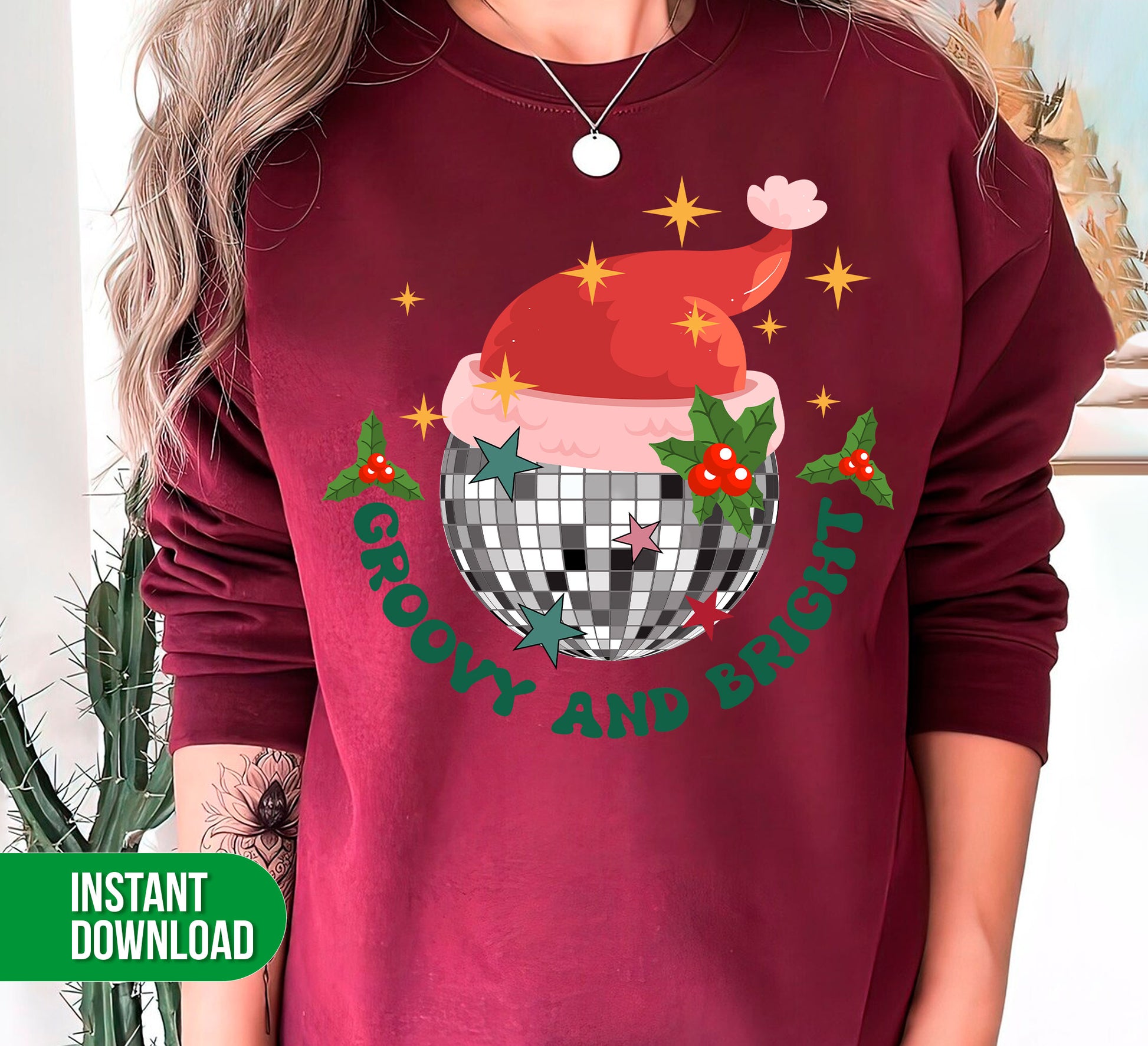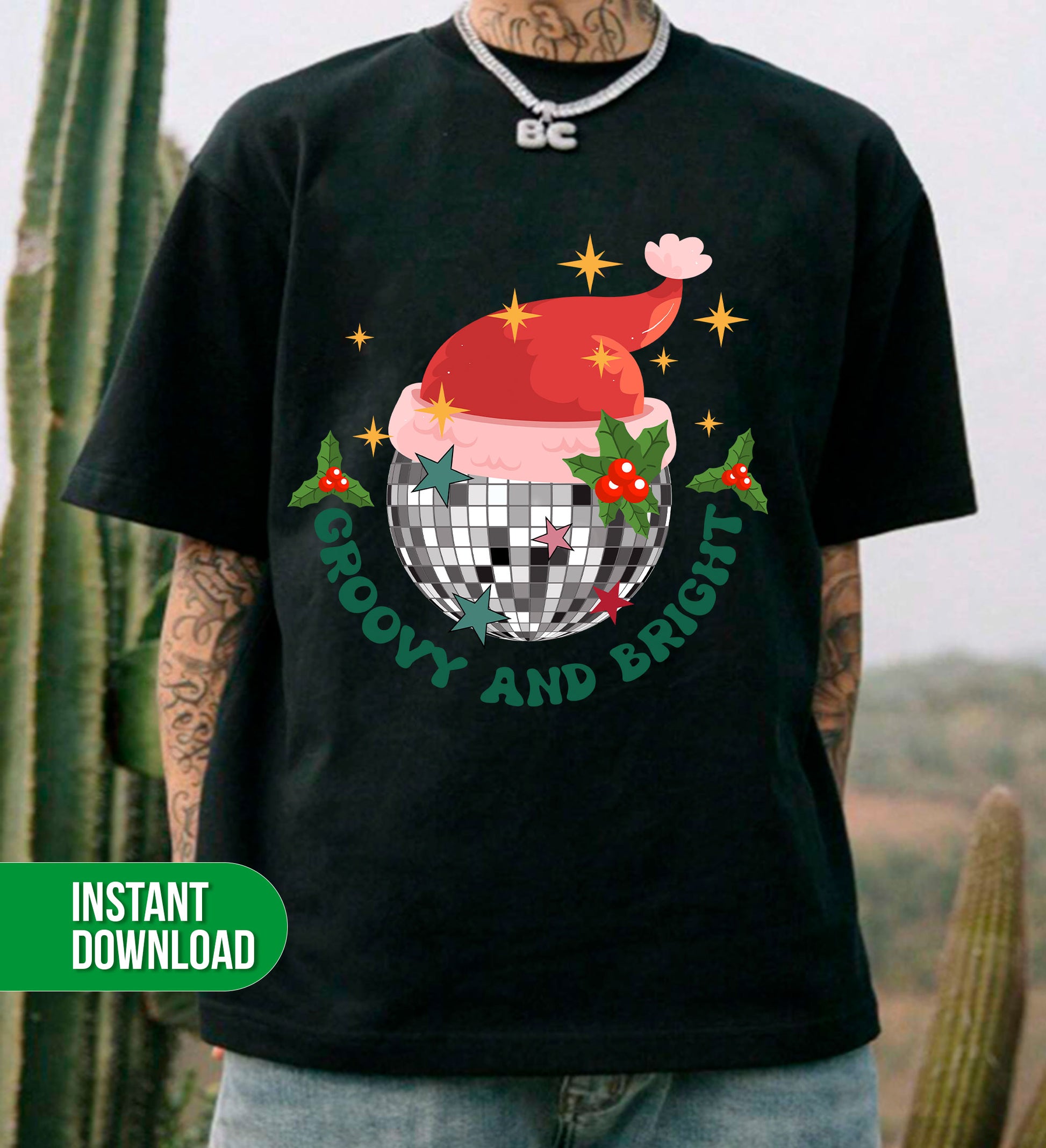 Groovy And Bright, Merry Christmas, Whole The World, Digital Files, Png Sublimation