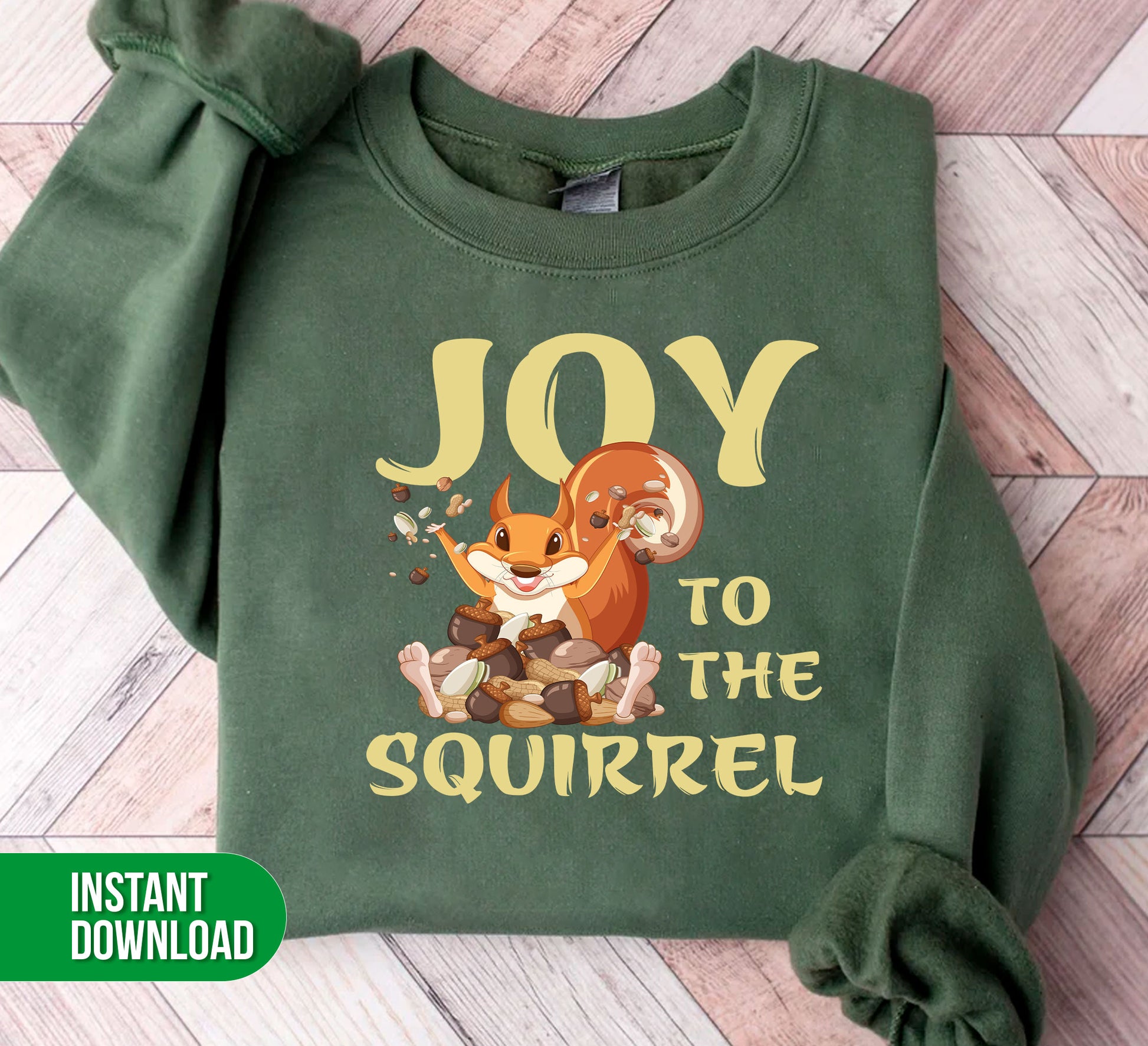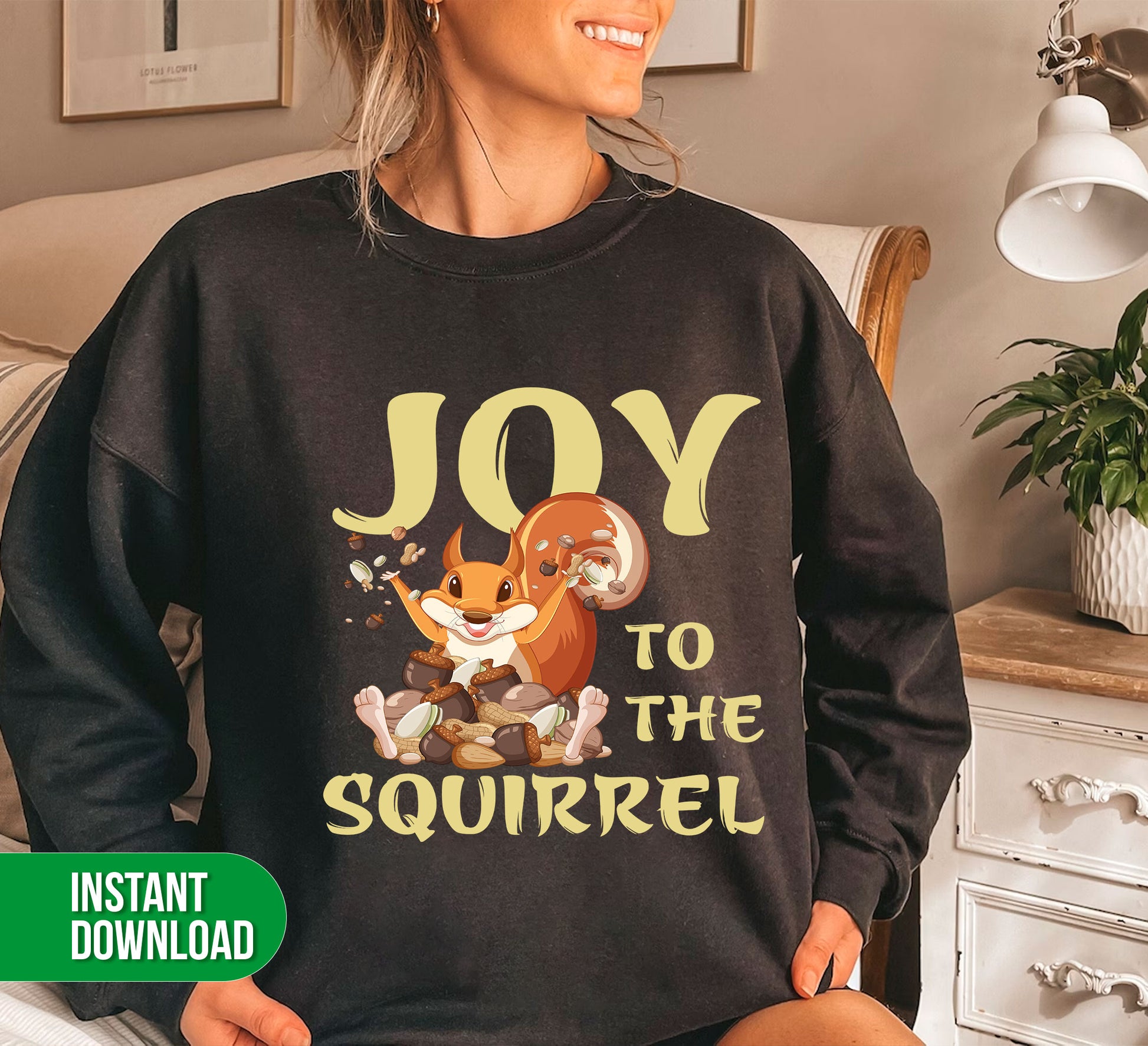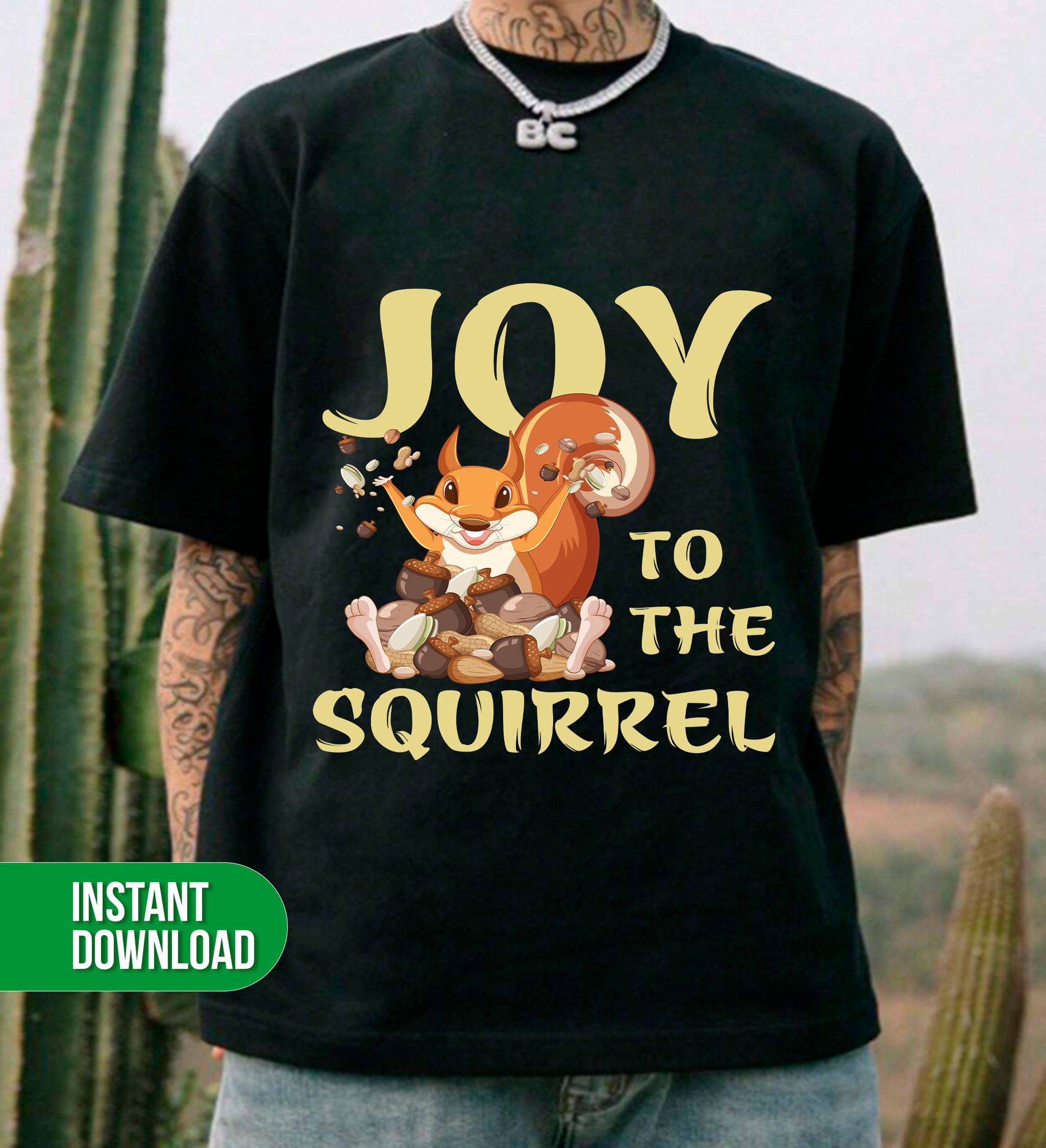 Joy To The Squirrel is a digital file design featuring a Thanksgiving squirrel holding a hazelnut. The files are in PNG format for sublimation printing. Bring joy to your next Thanksgiving gathering with this delightful design.