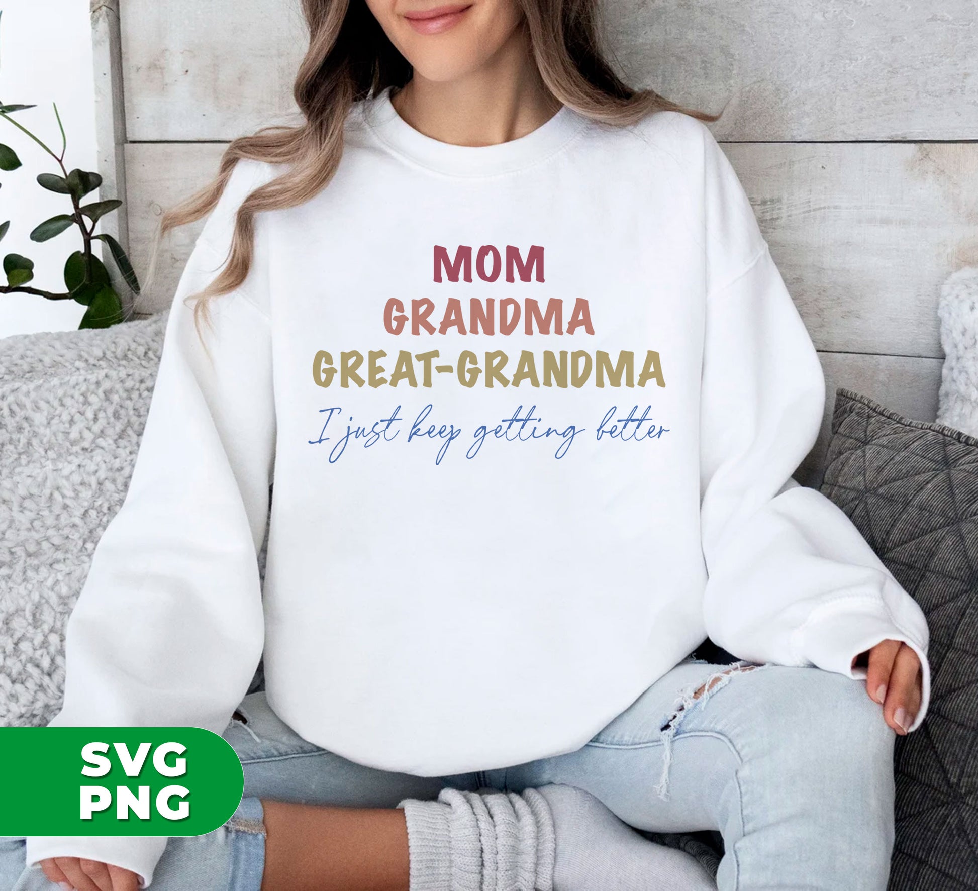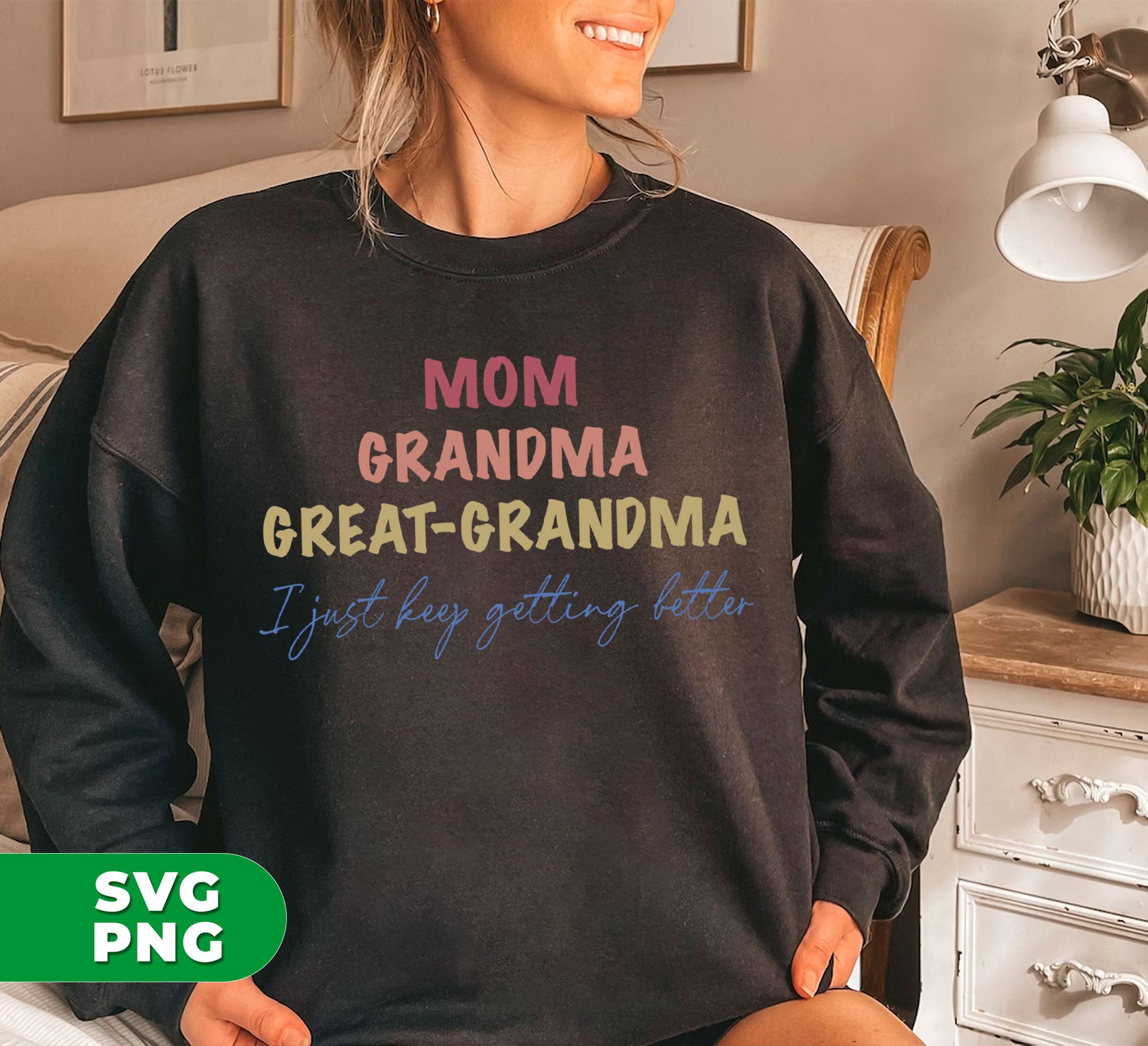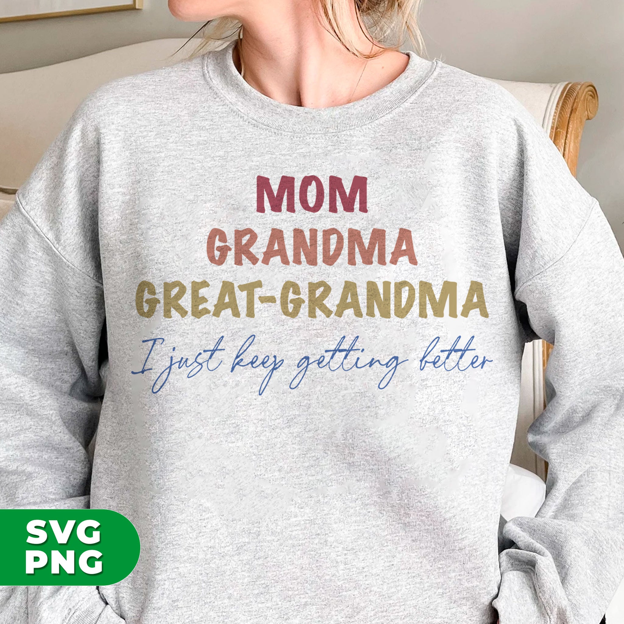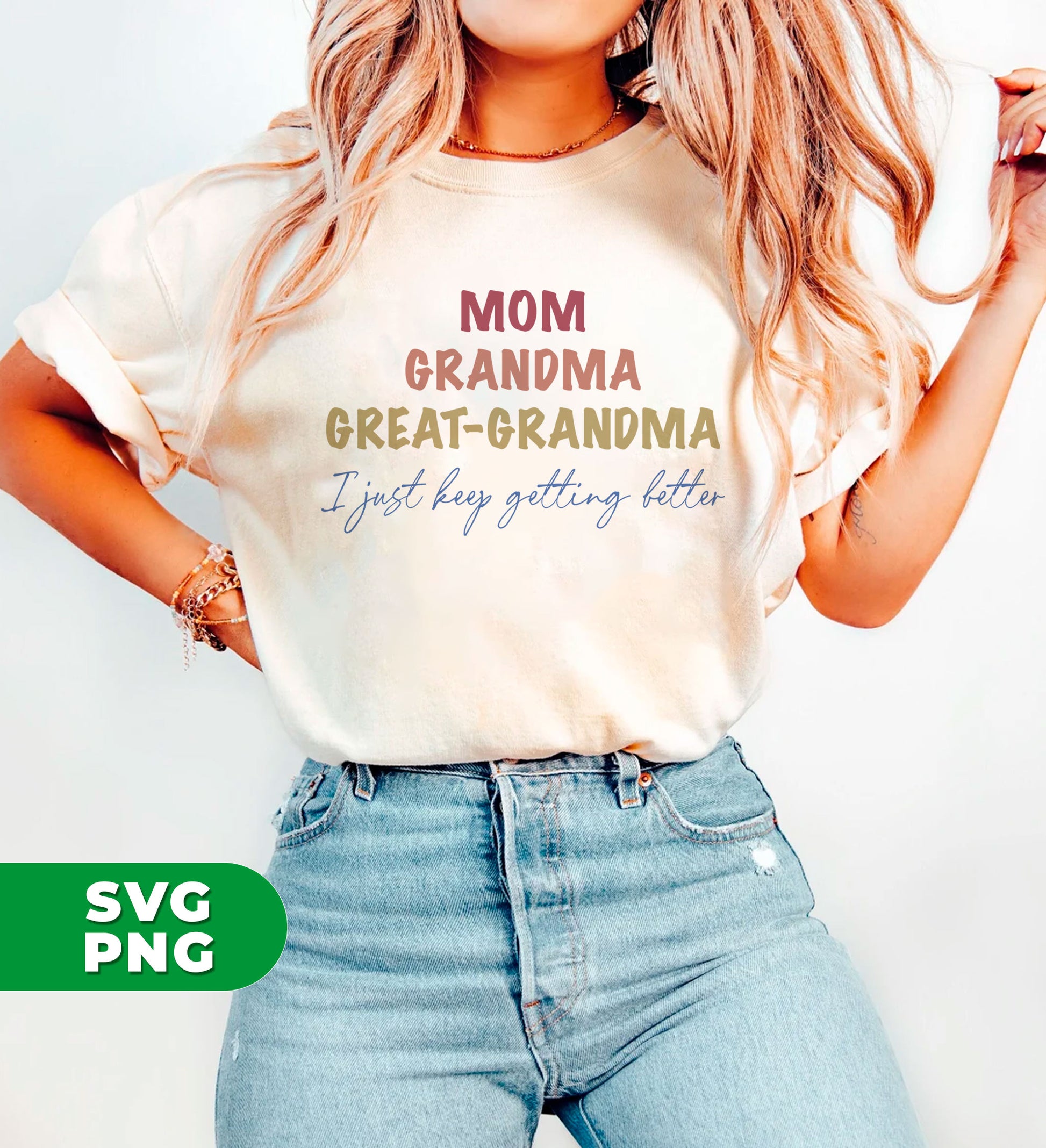 Mom, Grandma, Great-Grandma, I Just Keep Getting Better, Digital Files, Png Sublimation