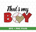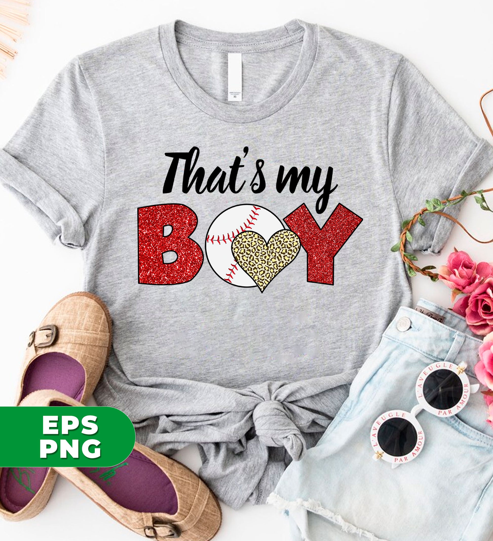 Show your love for baseball with our "That's My Boy" design featuring a red glitter heart and leopard print lettering. Perfect for digital files and png sublimation, this design will add a unique touch to any project. Get yours today!