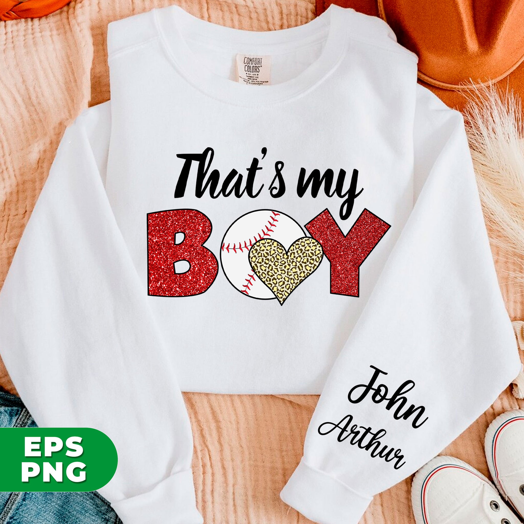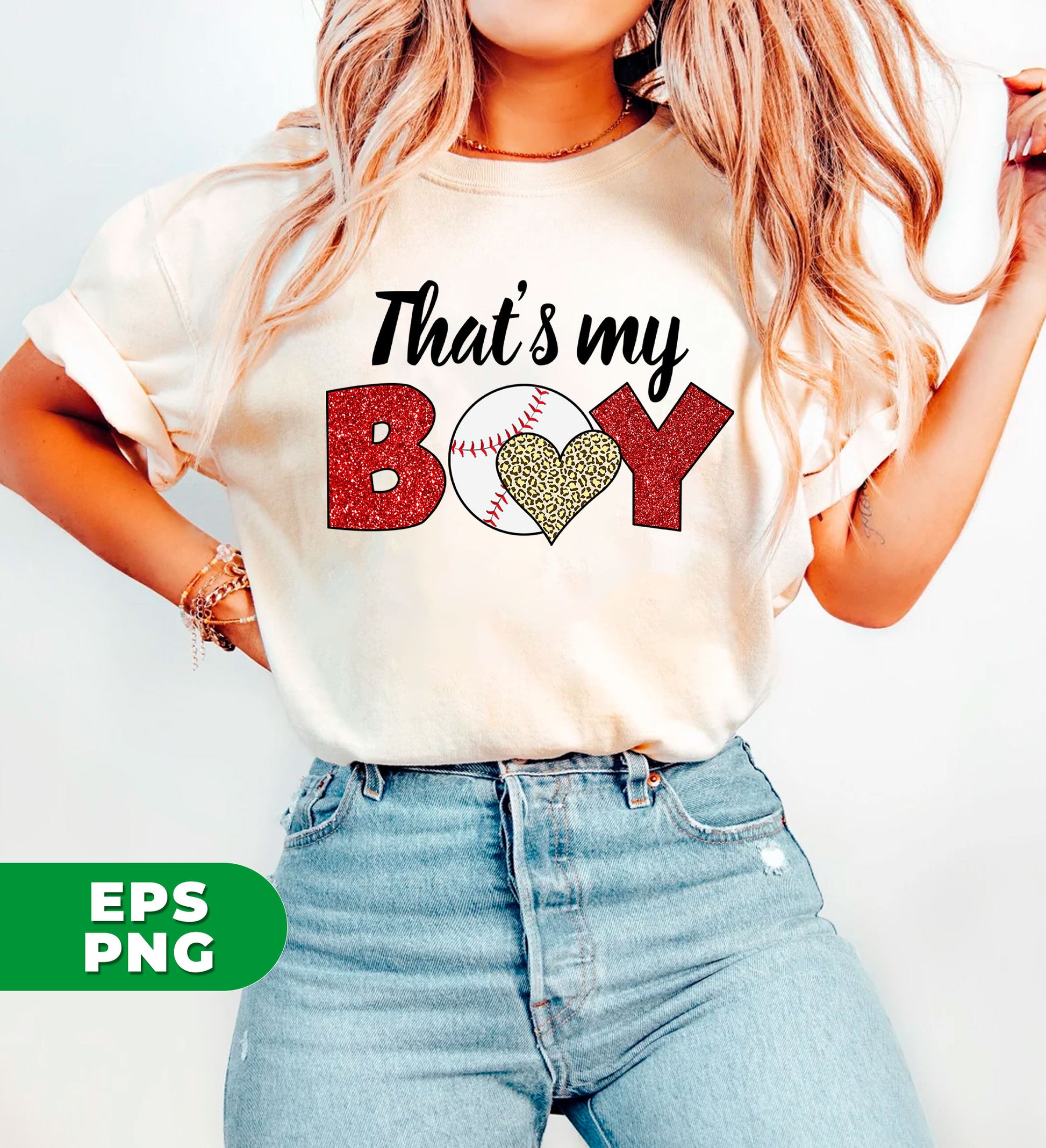 That's My Boy, Leopard In Heart, Red Glitter, Love Baseball, Digital Files, Png Sublimation