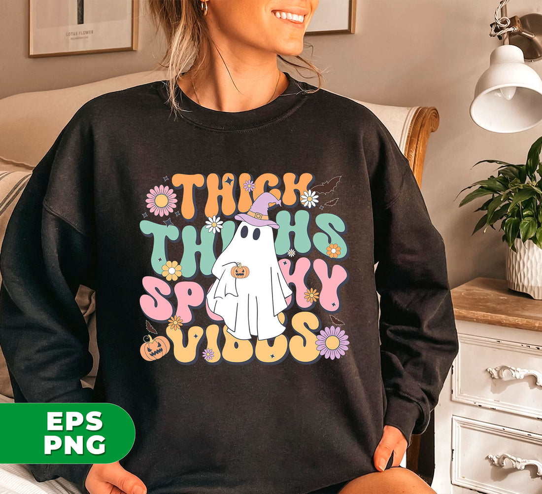 Thick Thighs Spooky Vibes, Cute Boo, Cute Ghost, Trendy Halloween, Happy Halloween, Digital Files, Png Sublimation