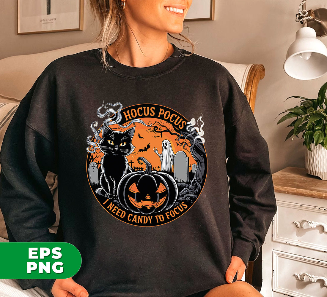Hocus Pocus, I Need Candy To Focus, Happy Halloween, Digital Files, Png Sublimation