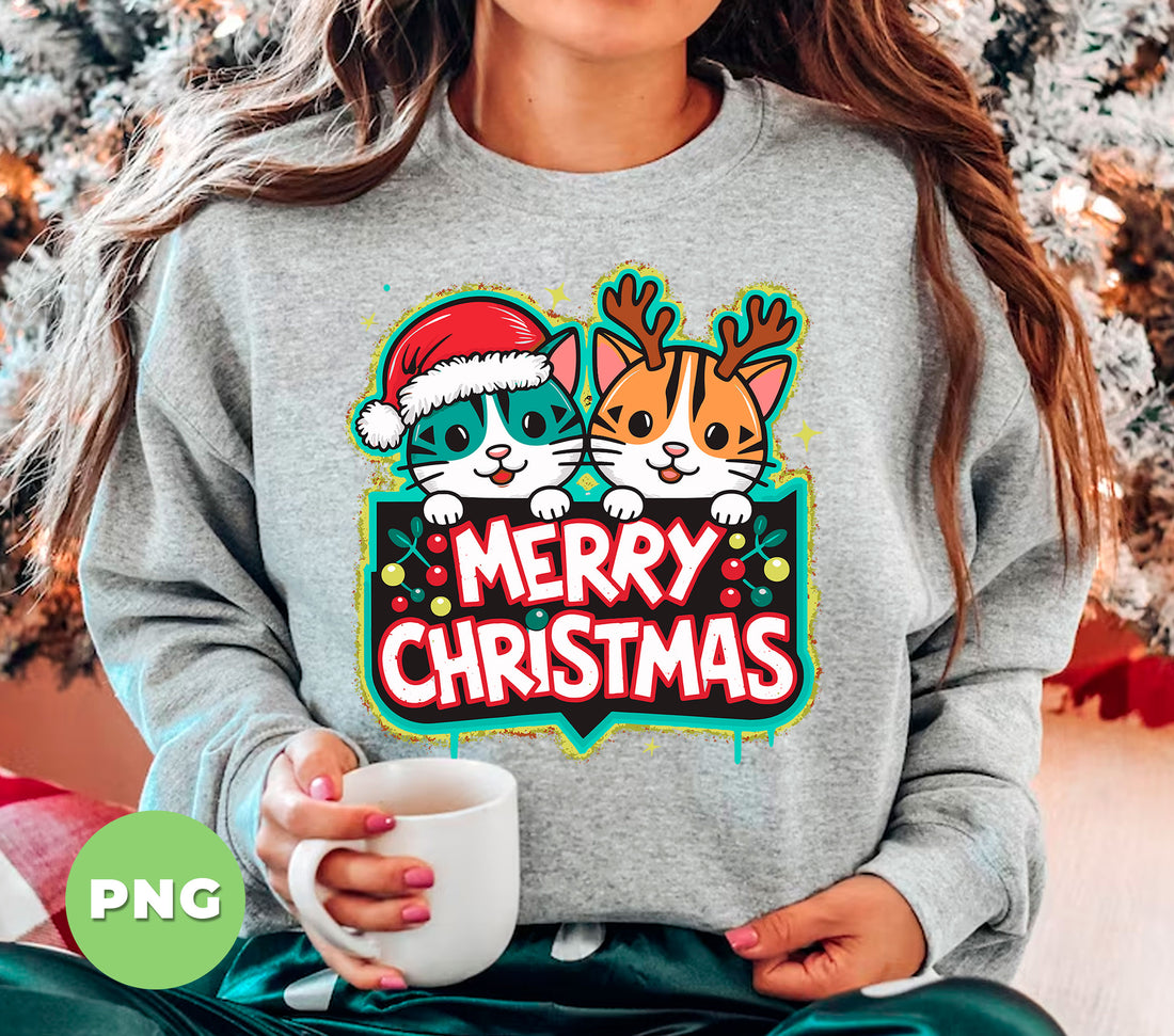 Meowy Catmas, Cute Cat, Love Christmas, Funny Baby Cat, Merry Christmas, Digital Files, Png Sublimation