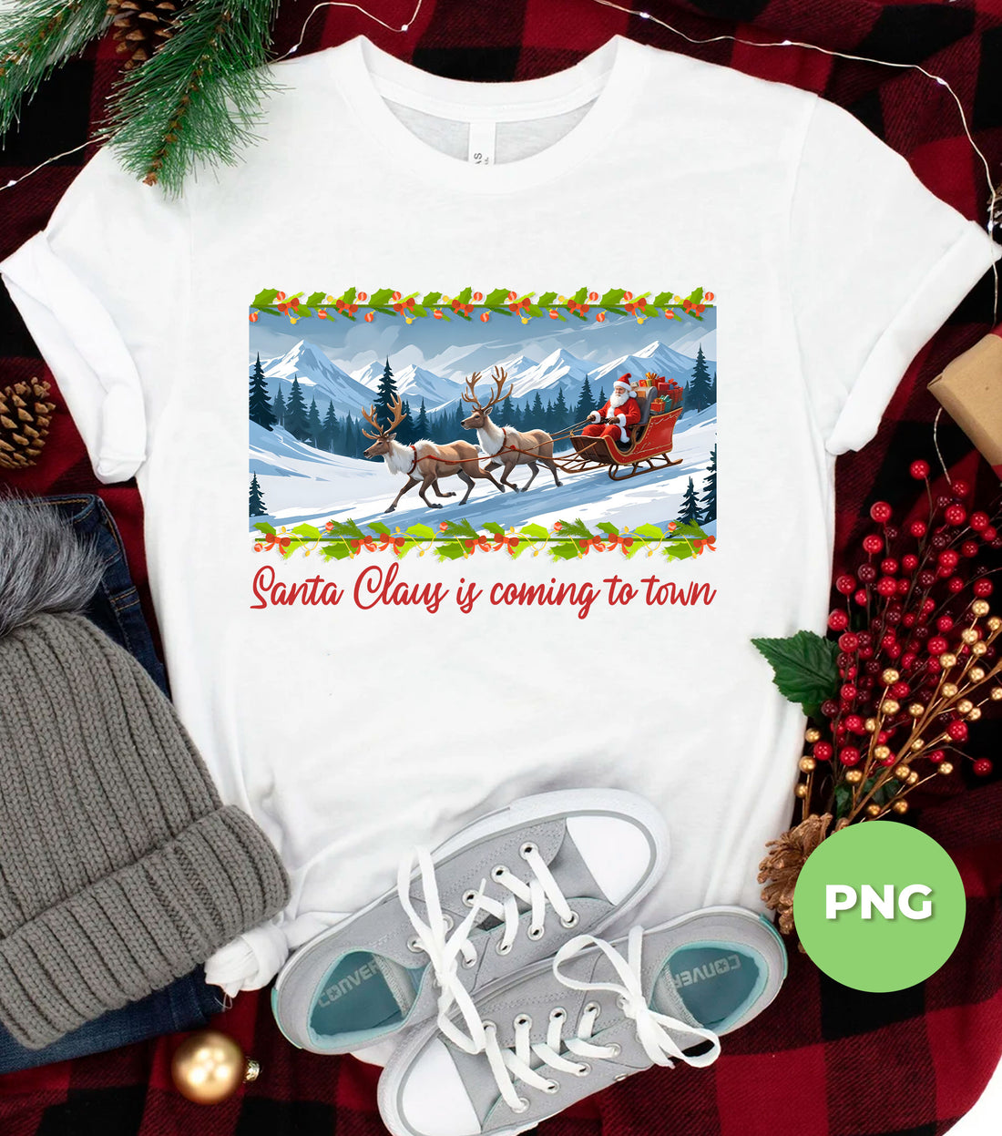 Santa Claus Is Coming To Town, Christmas Town, Raindeer Ride Santa, Digital Files, Png Sublimation